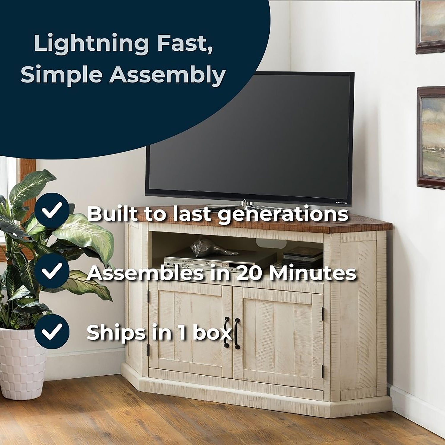 Details: Introducing our Rustic Corner TV Stand, crafted from solid New Zealand pine wood with a Rough sawn finish, adding a touch of natural beauty to your entertainment area. This stand is designed to fit pleasantly in any corner, making it a perfect space-saving solution. The stand features an open cubby for media devices and a cabinet for storage, providing both functionality and style. With its durable construction and timeless design, this TV stand is sure to complement any decor. Assembly is quick and easy, so you can enjoy your new TV stand in no time. Elevate your entertainment space with our Rustic Corner TV Stand, where quality craftsmanship meets effortless style. Martin Svensson Home is an American company started by the man himself, Martin Svensson, a Swedish immigrant over 100 years ago. We continue his legacy today by delivering high quality, affordable solid wood luxury furniture. Your satisfaction is our guarantee. When you pick up a Martin Svensson piece, you can rest assure that this furniture will last a lifetime!