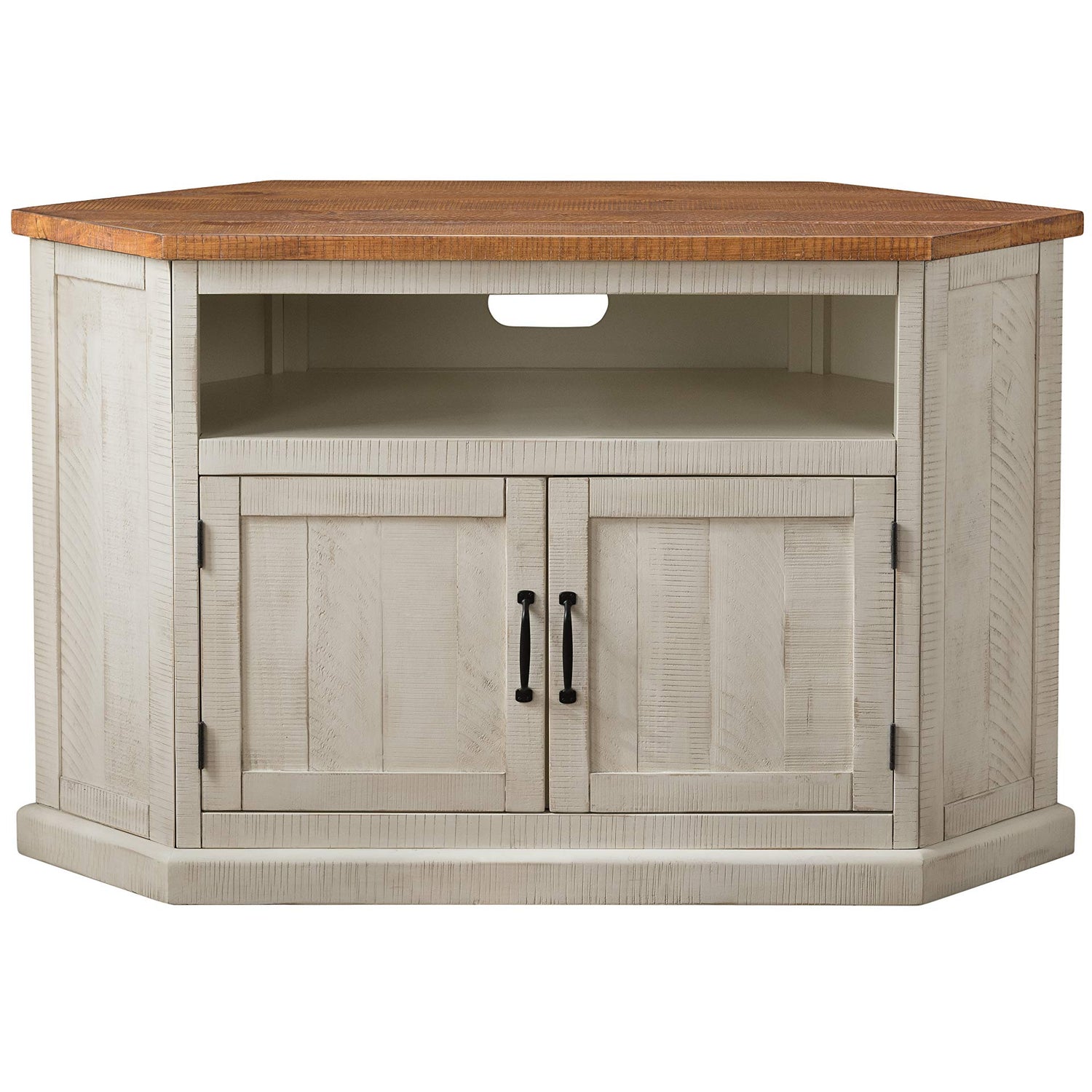 Martin Svensson Rustic Solid Wood TV Stand - Antique White and Honey Tobacco Finish - Hexagonal Shape and Farmhouse Design Entertainment Center with Shelves Included