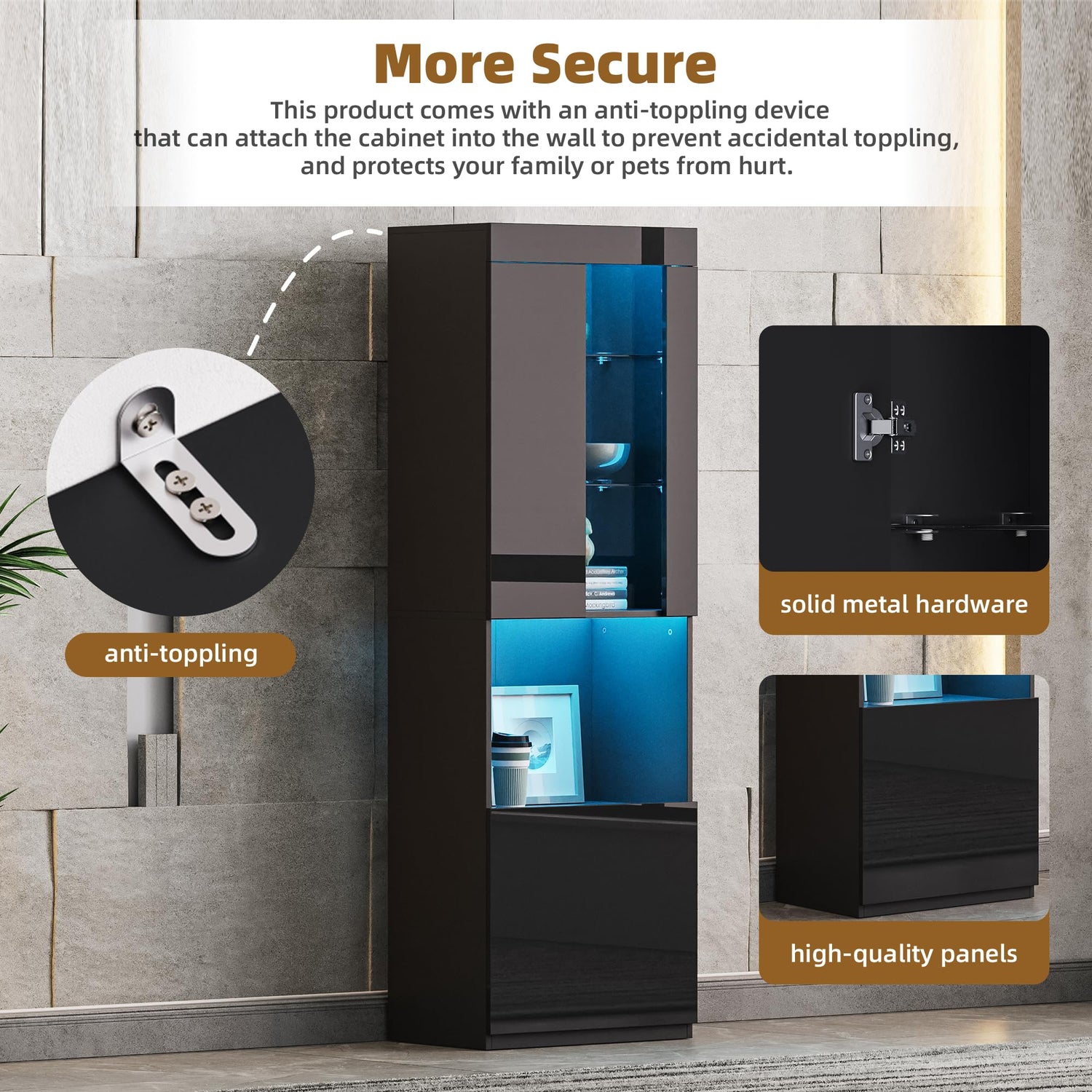 Merax High Gloss TV Stand with 34.2" Non-Heating Electric Fireplace, Modern LED Entertainment Center & Two Tall Pantry Cabinets and Tempered Glass Shelves, Media Console Set for TVs up to 75", Black