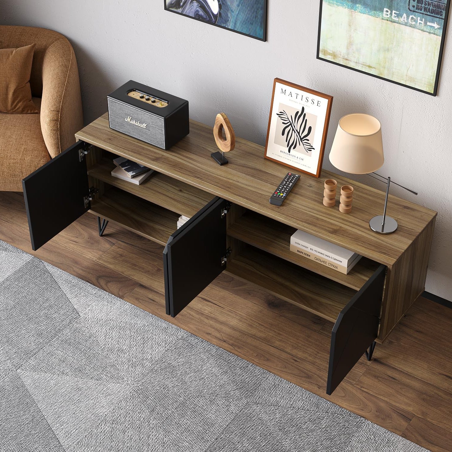 Mid Century Modern TV Stand Console for Living Room (55 to 65 Inch Television) Black and Brown with Storage Cabinets, Modern Designs by Crafts and Comfort