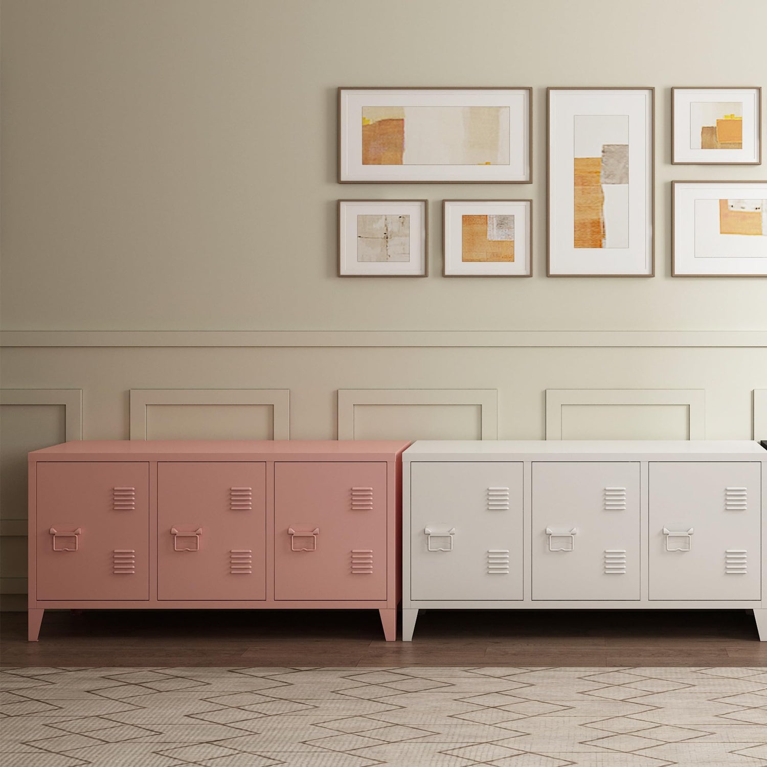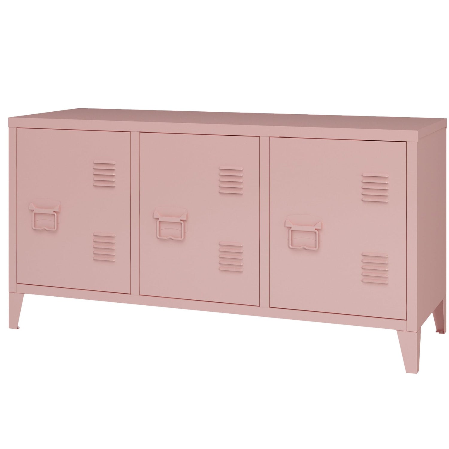 MIOCASA TV Stand Metal TV Table with Storage Steel 3 Door Locker Cabinet for Living Room (Pink)