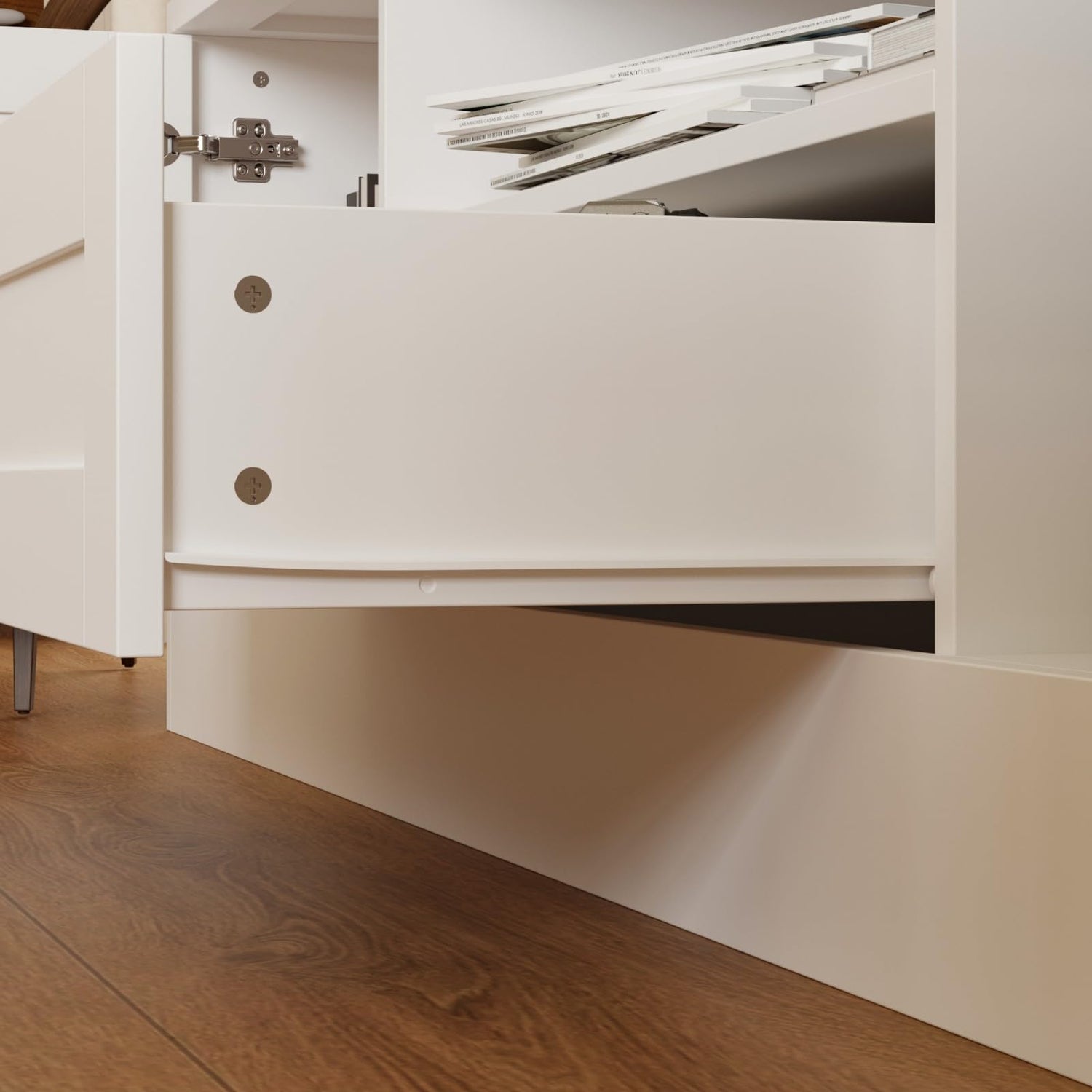 - Built to Last - Mainly made of sturdy particle boards, this white TV console is built for durability . Adopting quality hinges and slide rails, doors and drawers will be opened easily. Smooth surface is also easy to clean. Equipped with anti-tipping devices, it will stand more firmly to avoid collapse.