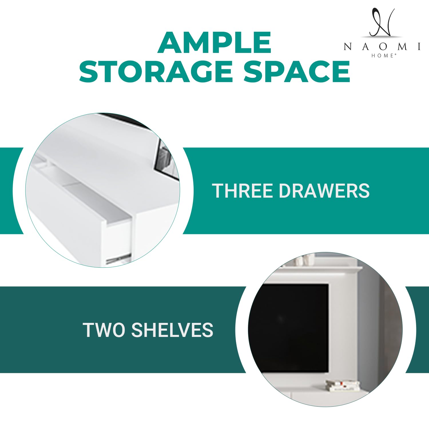 - AMPLE STORAGE SPACE: The wall entertainment center offers ample storage with three drawers and two shelves. This is great for storing movies, games, and other entertainment items.