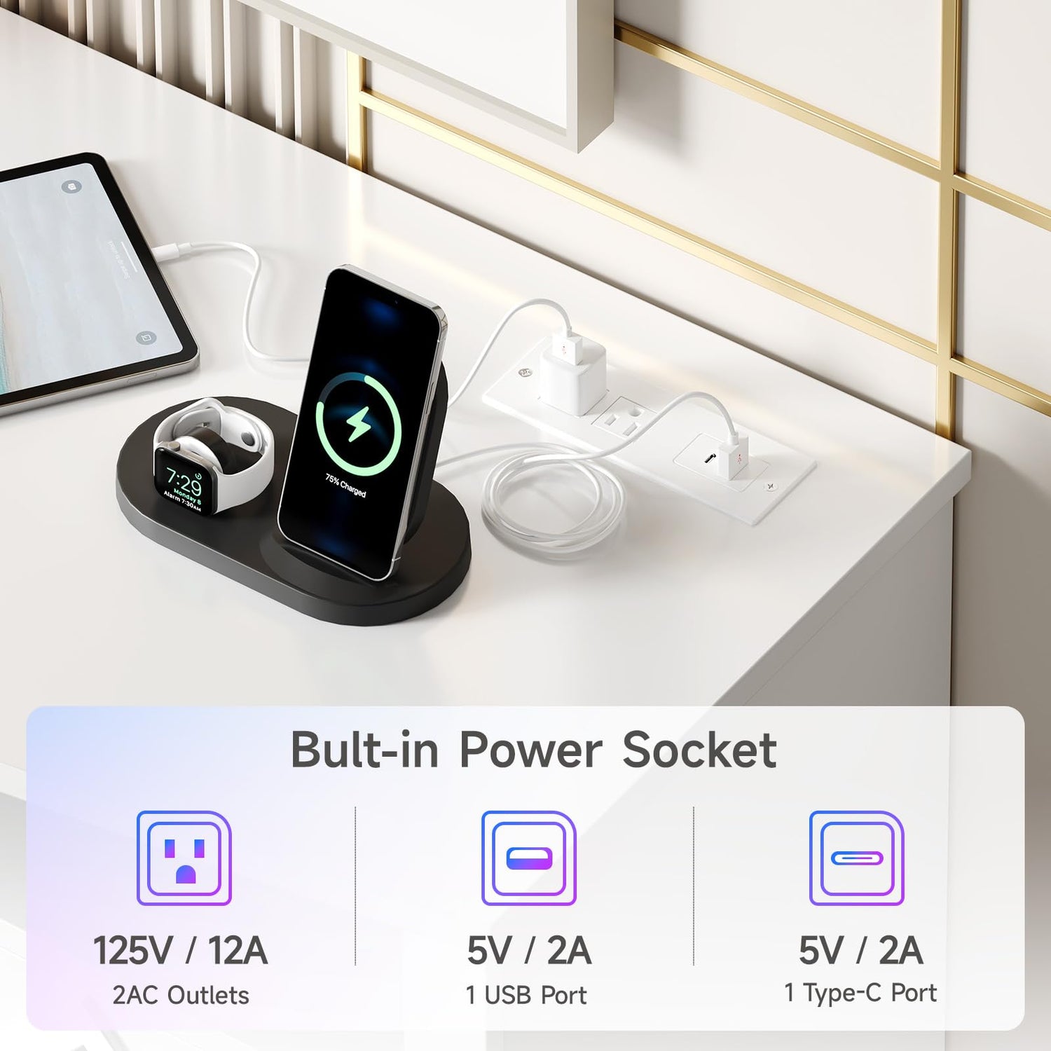 - 【TV Stand with Charging Station】: Featuring 2 power outlets, 1 Type-C port, and 1 USB ports, it can easily charge multiple devices such as phones, tablets, and earphones, meeting your multi-device charging needs before going to bed or when you wake up