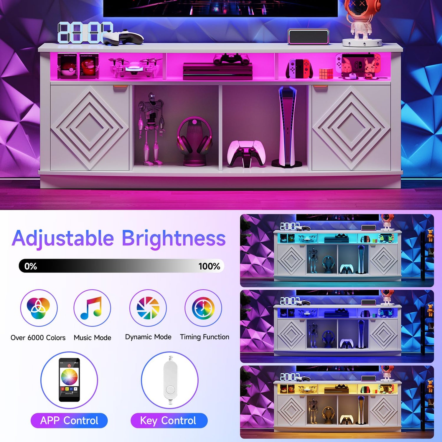 ONBRILL LED TV Stand for 80 Inch TV, Entertainment Center with Power Outlets, Modern TV Console Gaming Media Television Stands with Storage for Living Room, Bedroom, Gaming Room, 70 Inch, White
