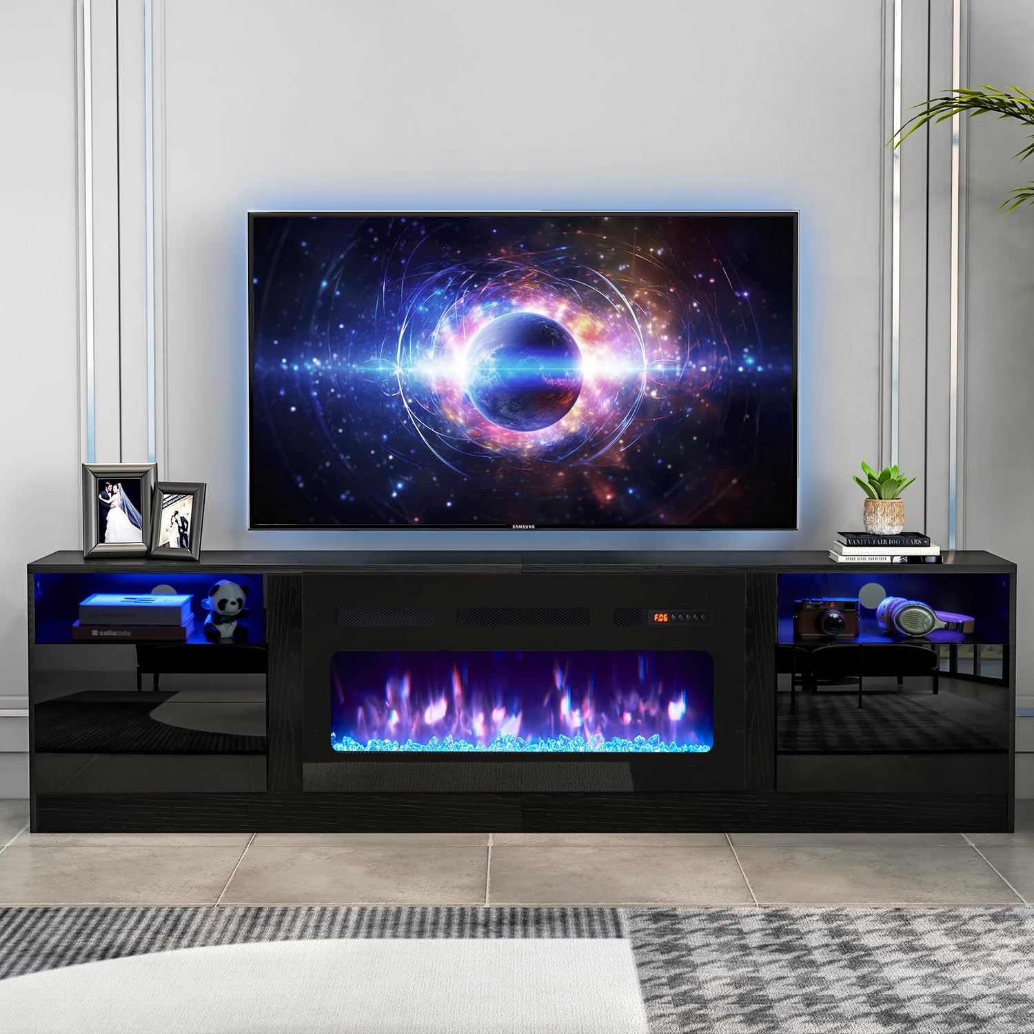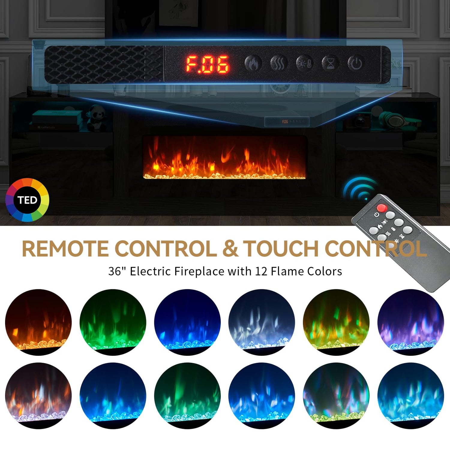 oneinmil Fireplace TV Stand with 36" Electric Fireplace, LED Light Entertainment Center with Modern Wood Texture, Highlight Storage Cabinet for TVs Up to 90", 79 inches, Black