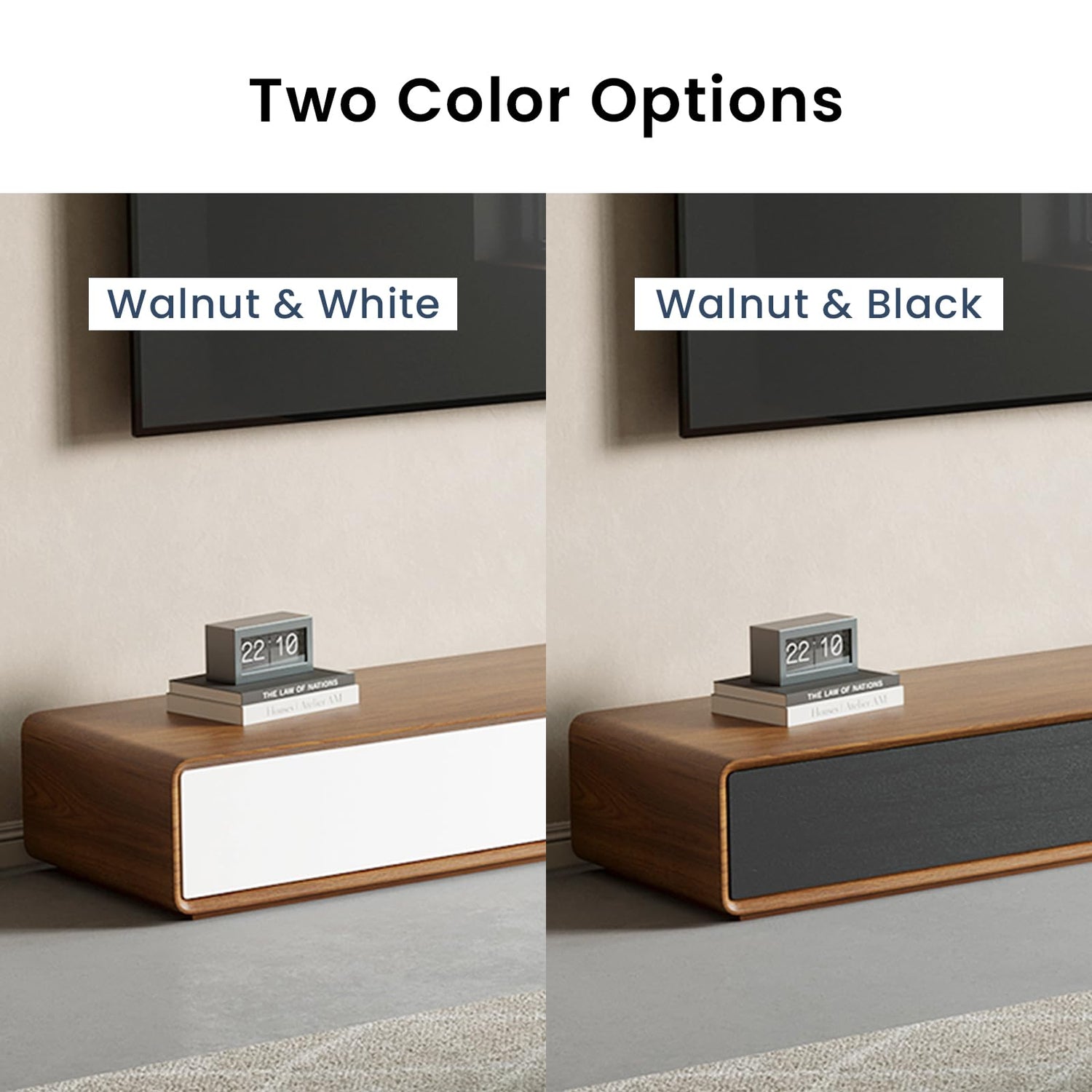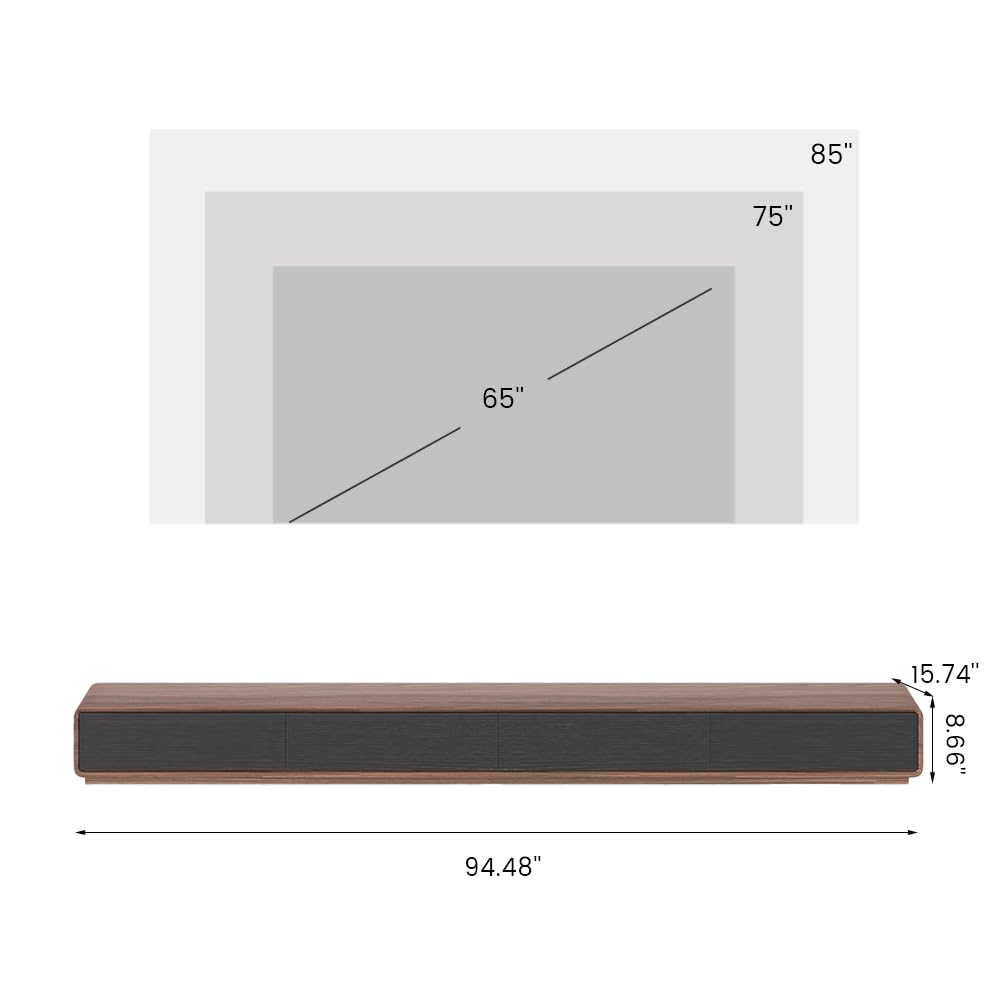 POVISON Modern TV Stand, Media Console with 4 Drawers, Soild Wood Entertainment Center for 75+ 90 Inch TV, Fully-Assembled, Black & Walnut Veneer, 94.5”