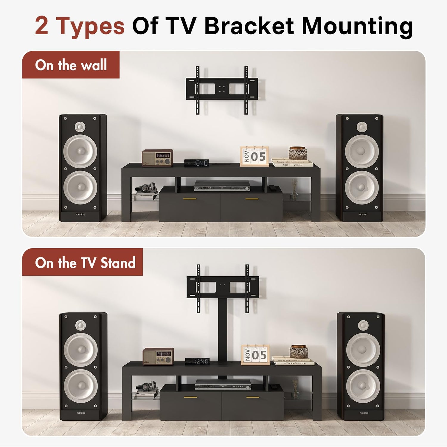 - 【TV Bracket & Wall Mount】This tv stand mount features a detachable stand, allowing the TV to be rotated up to 40° for optimal viewing angles. The stand can also be removed, allowing the TV to be wall-mounted on a suitable wall surface, turning the tv stand for bedroom into a decorative piece and storage unit.