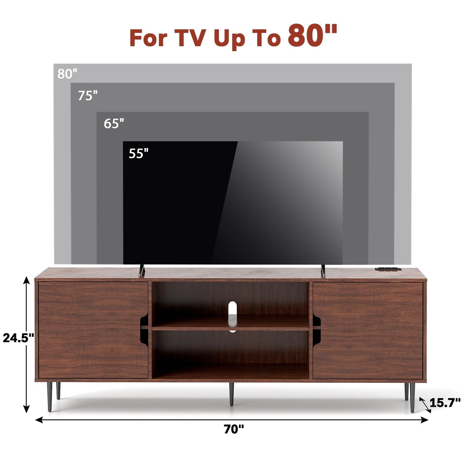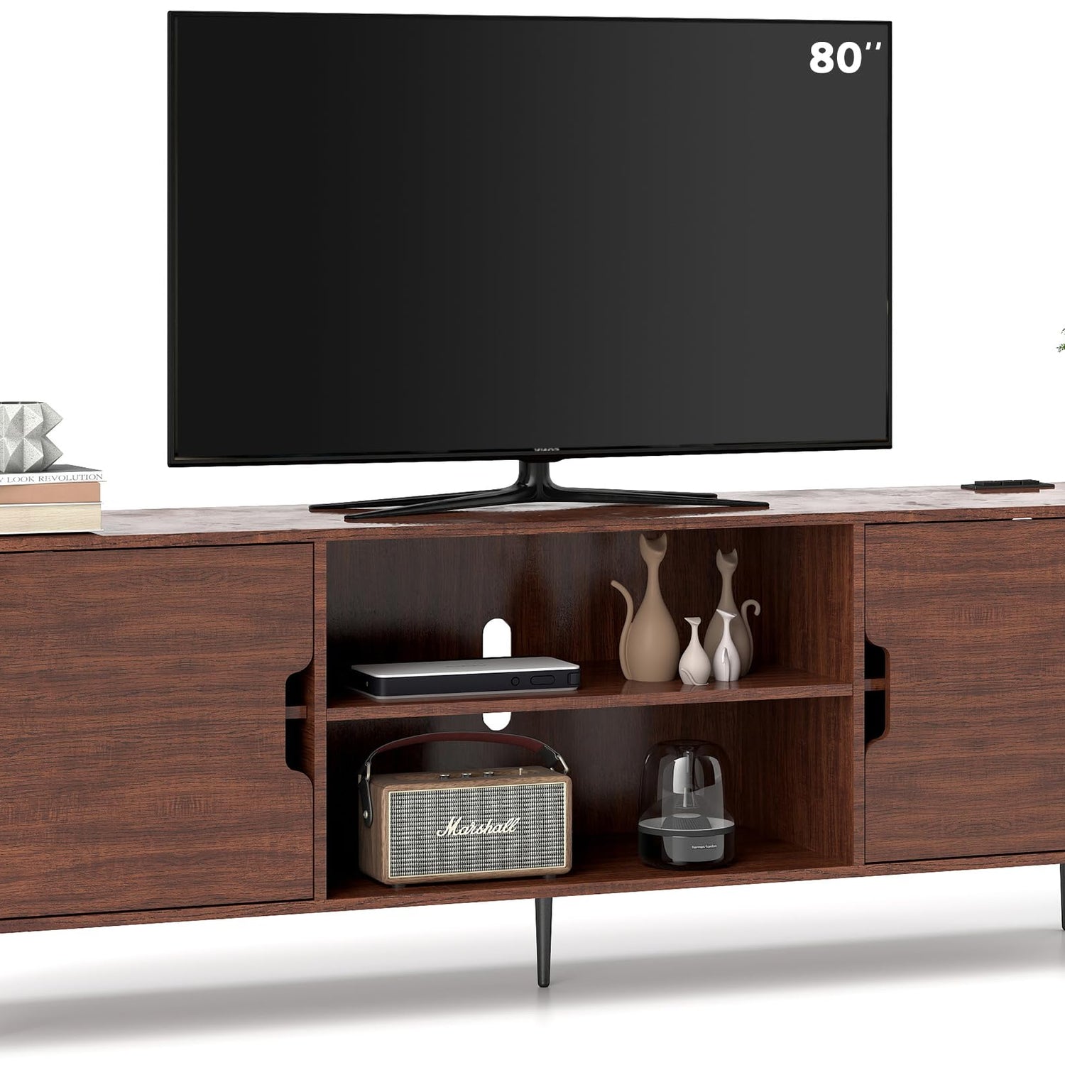 • 【For TV Up To 80 IN】This mid century modern tv stand is fully compatible with 80-inch TVs and can be placed in the living room or bedroom. Of course, it's also suitable for TVs around 65 inches. Its top can hold small items as a storage cabinet. For wall-mounted TVs or wall-mounted photos, etc., this universal tv stand can also serve as a great decorative item.