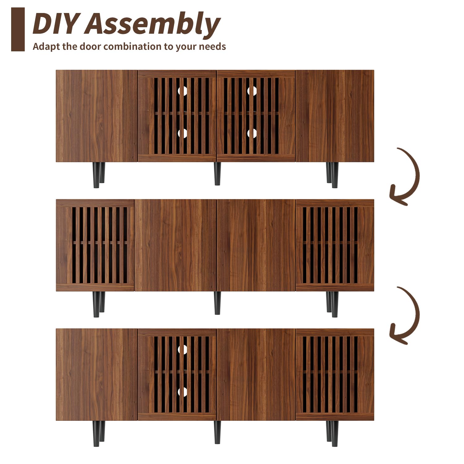- Spacious Storage & DlY Doors: With four DIY doors and adjustable shelves, this TV table allows you to customize your storage space according to your needs; It's perfect for housing gaming consoles, media players, or other accessories in your living room TV stand
