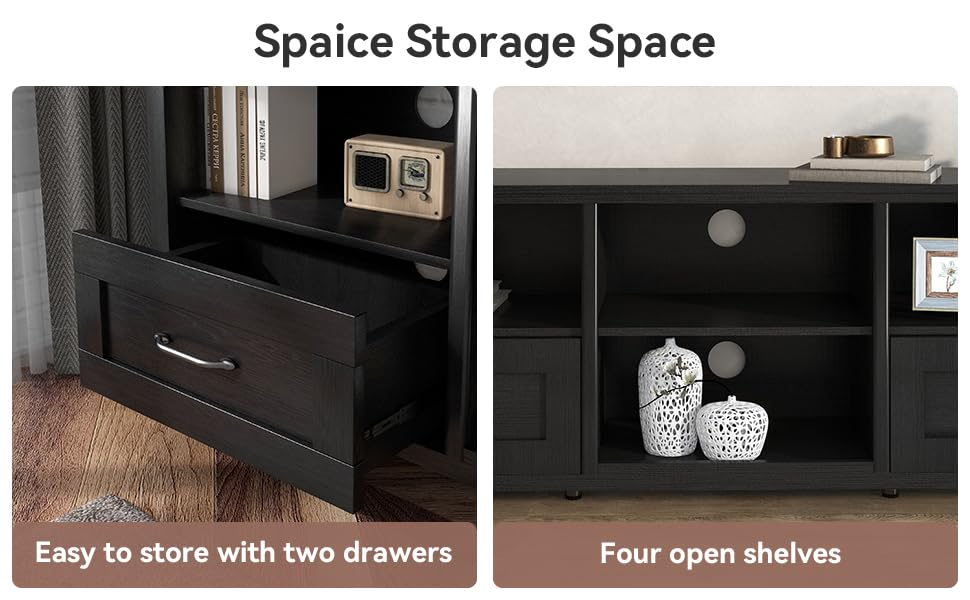 SAINTCY TV Stand for TVs up to 80", Large Television Stands with Drawers for Living Room, Farmhouse Entertainment Center with Storage and Shelves, TV Console Cabinet Furniture for Bedroom (Black)