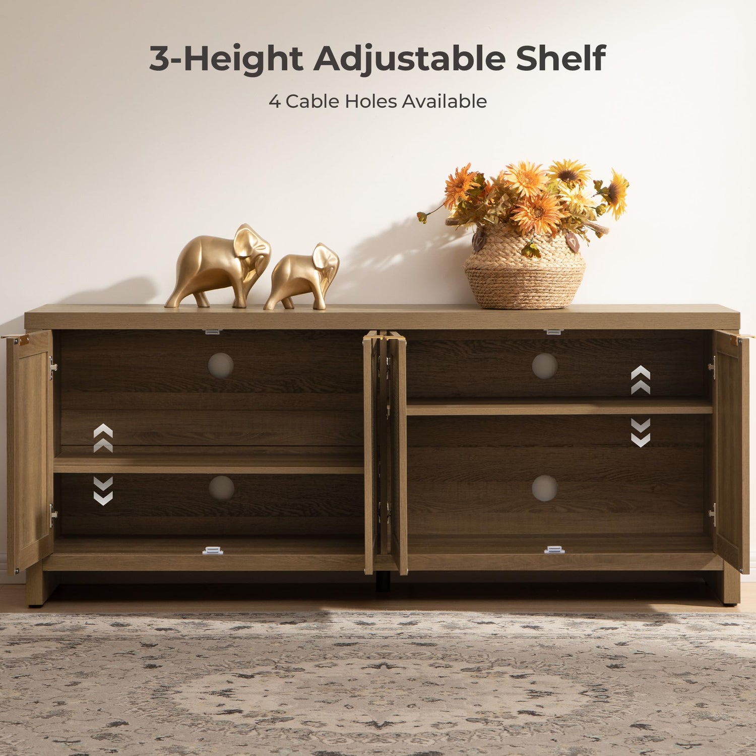- 【Unique Boho Style】- This TV stand features 4 beautifully crafted doors with unique rattan panels, adding an elegant touch of sophistication and natural charm to your living room. The distinctive design enhances visual appeal and brings a warm, textured look that sets your space apart.