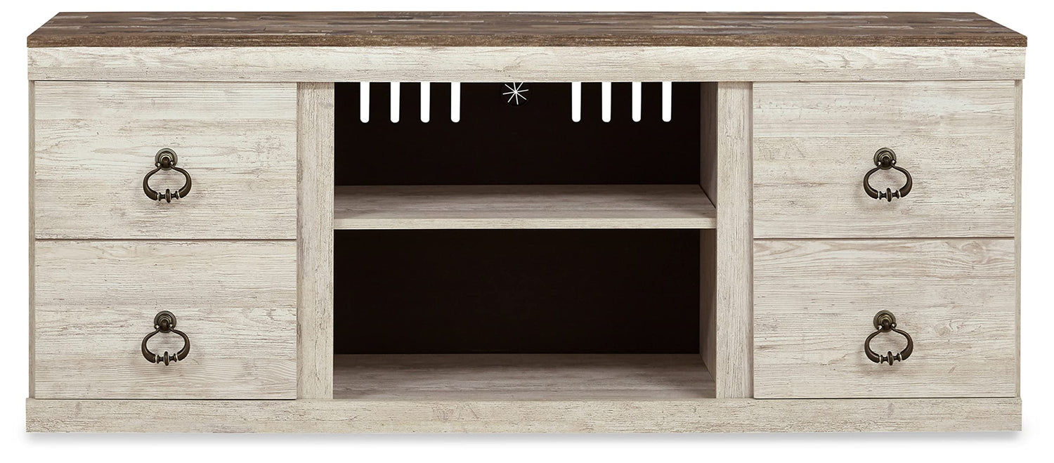 Signature Design by Ashley Willowton Shabby Chic Large TV Stand up to 60" with 3 Shelves and Fireplace Option, White