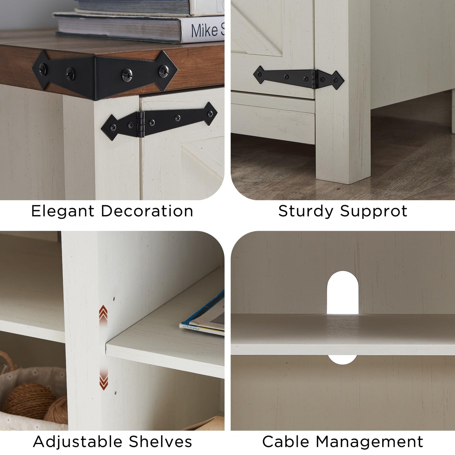 T4TREAM Farmhouse TV Stand for TVs Up to 75 inches, Wood Barn Door Media Television Console Table with Storage Cabinets, Easy Assembly Modern Entertainment Center for Living Room, Antique White