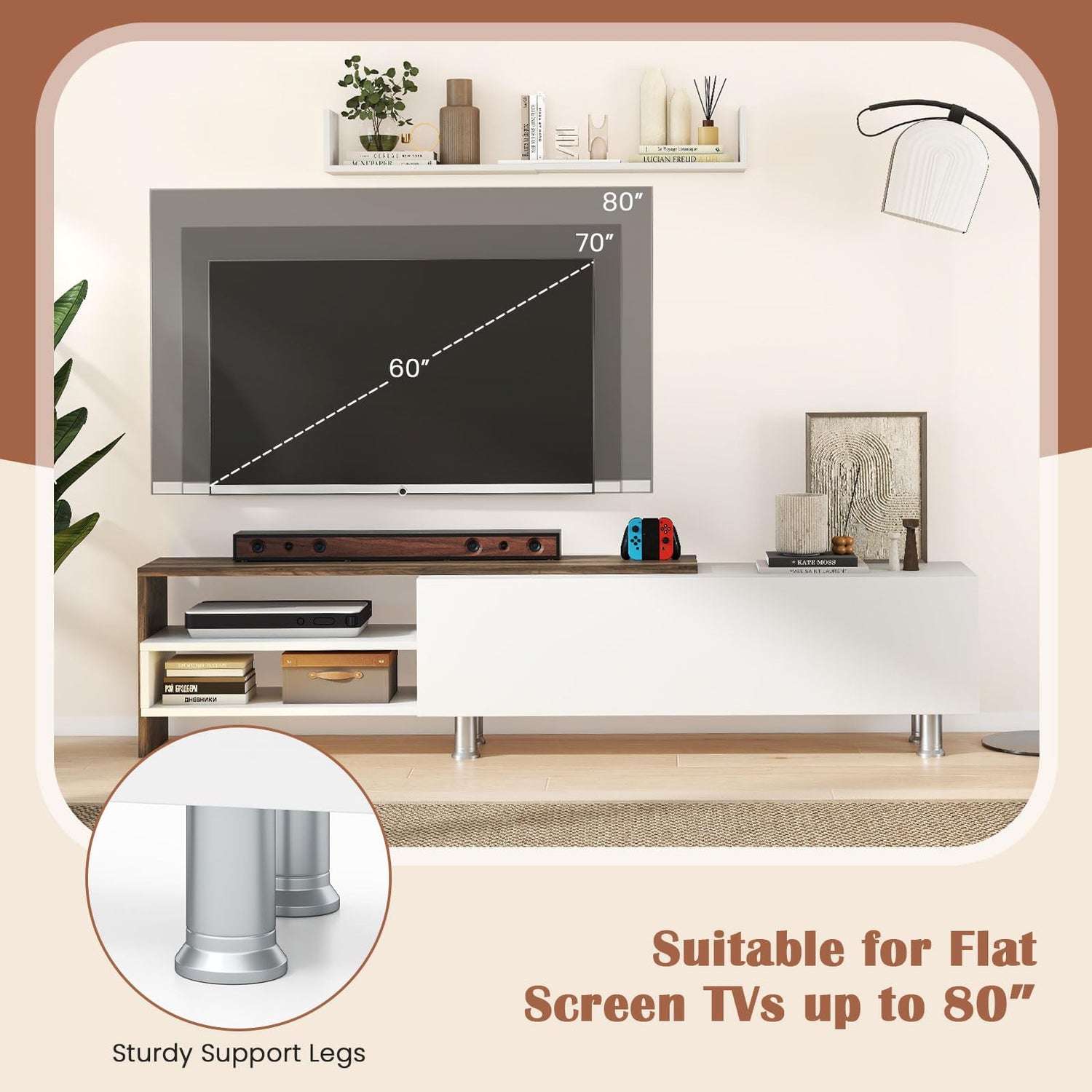 Tangkula White TV Stand with 2 Wall Shelves, Modern Entertainment Center for TVs up to 80 Inches, TV Cabinet with 2 Storage Compartments and Cabinet, Media Console Table for Living Room, Study (White)