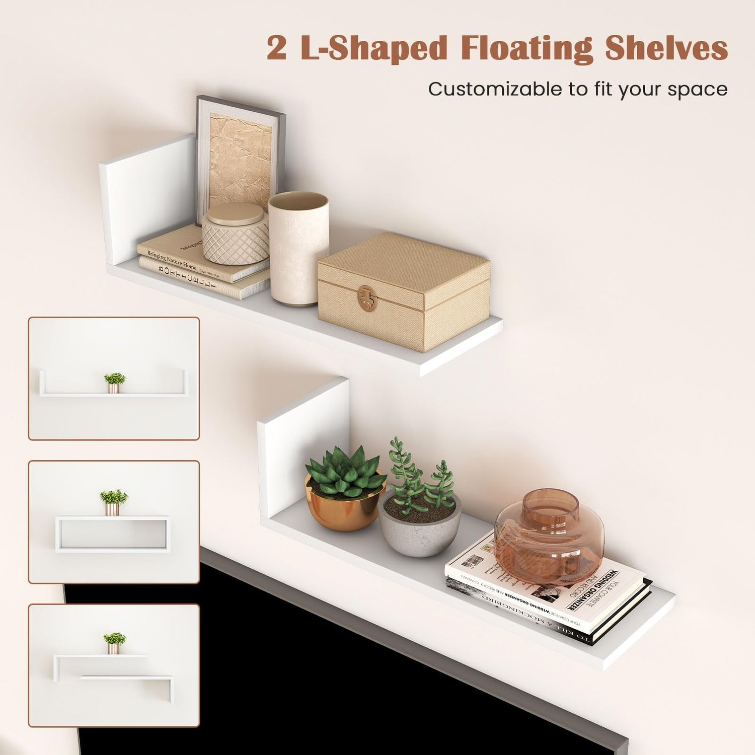 - 2 Floating Shelves: Customize your setup with 2 L-shaped floating shelves that match the TV console’s style. You can arrange them to fit your space and showcase your favorite decorations or media accessories, all without worrying about style variations.