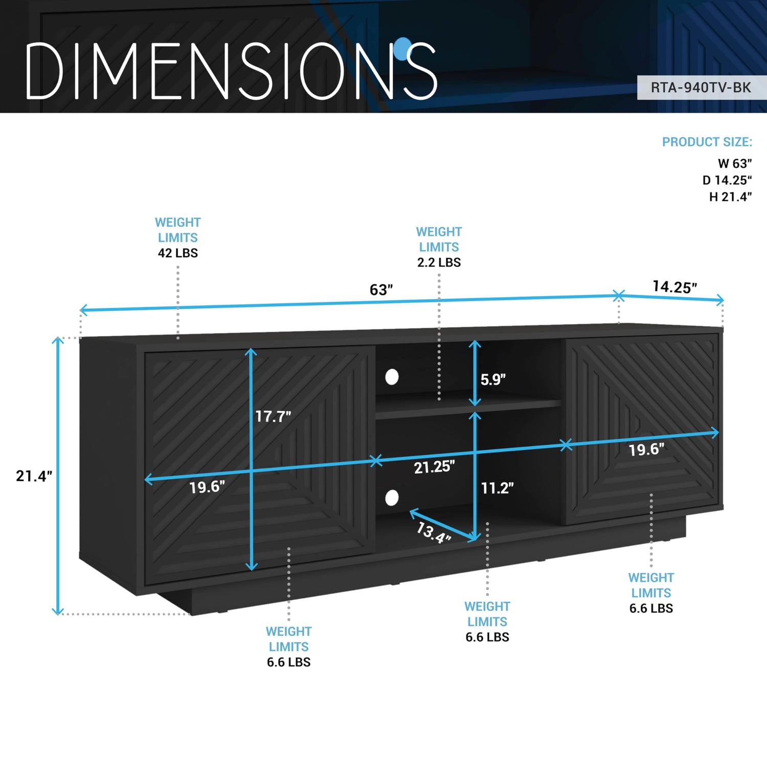 - DIMENSIONS: 63” W x 14.25” D x 21.4” H / Weight Capacity: 42 lbs / 2 year Limited warranty / Ships in 1 Box.