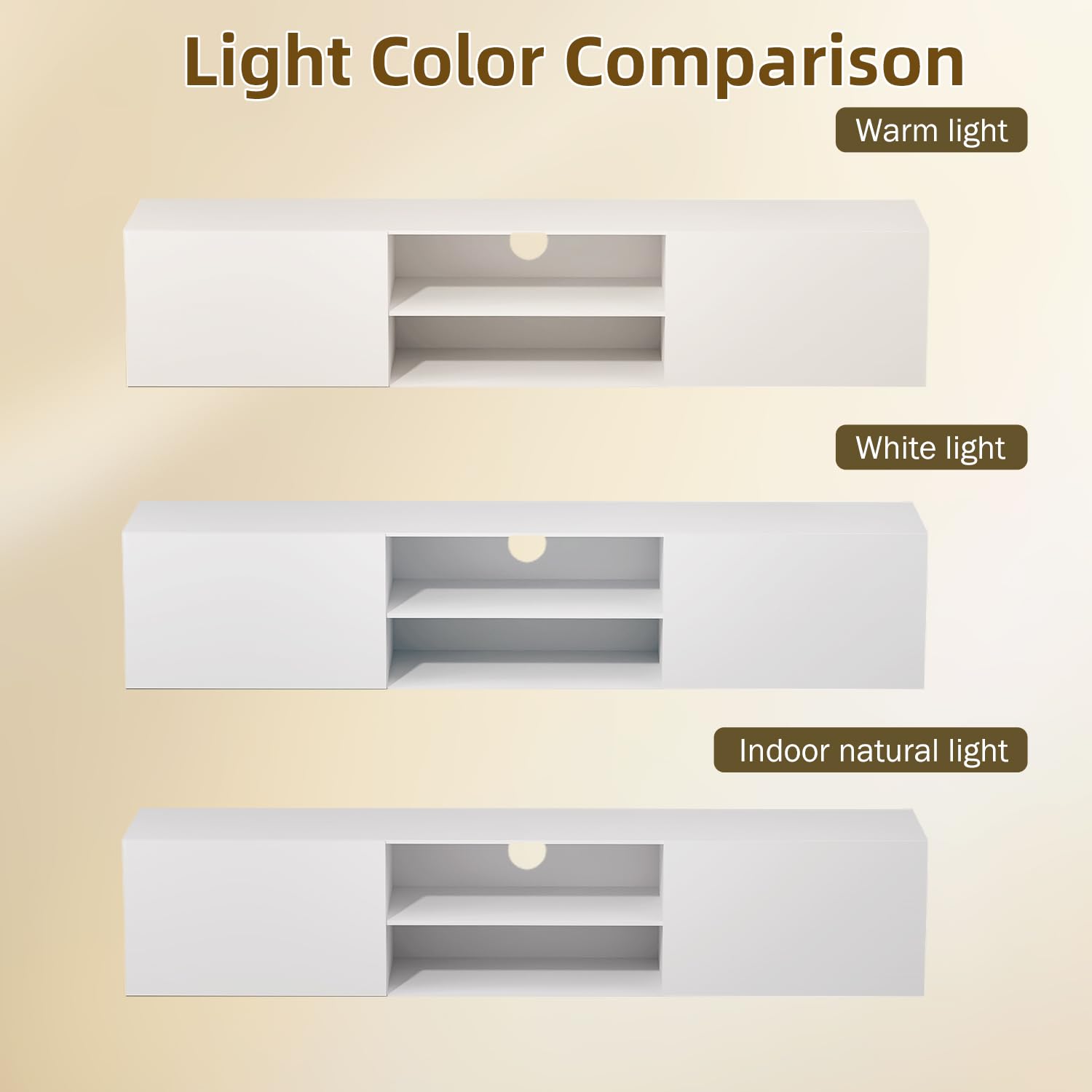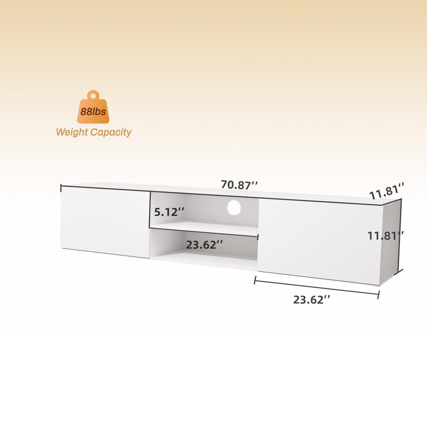 TIMSATIO Floating TV Stand Wall Mounted,70" Floating Entertainment Center for 60" 70" 80",Floating Shelf for Under tv, 3 Cabinet TV Console,Media Console for Living Room (Pure White)