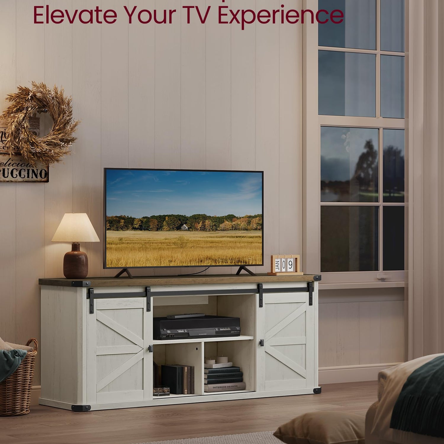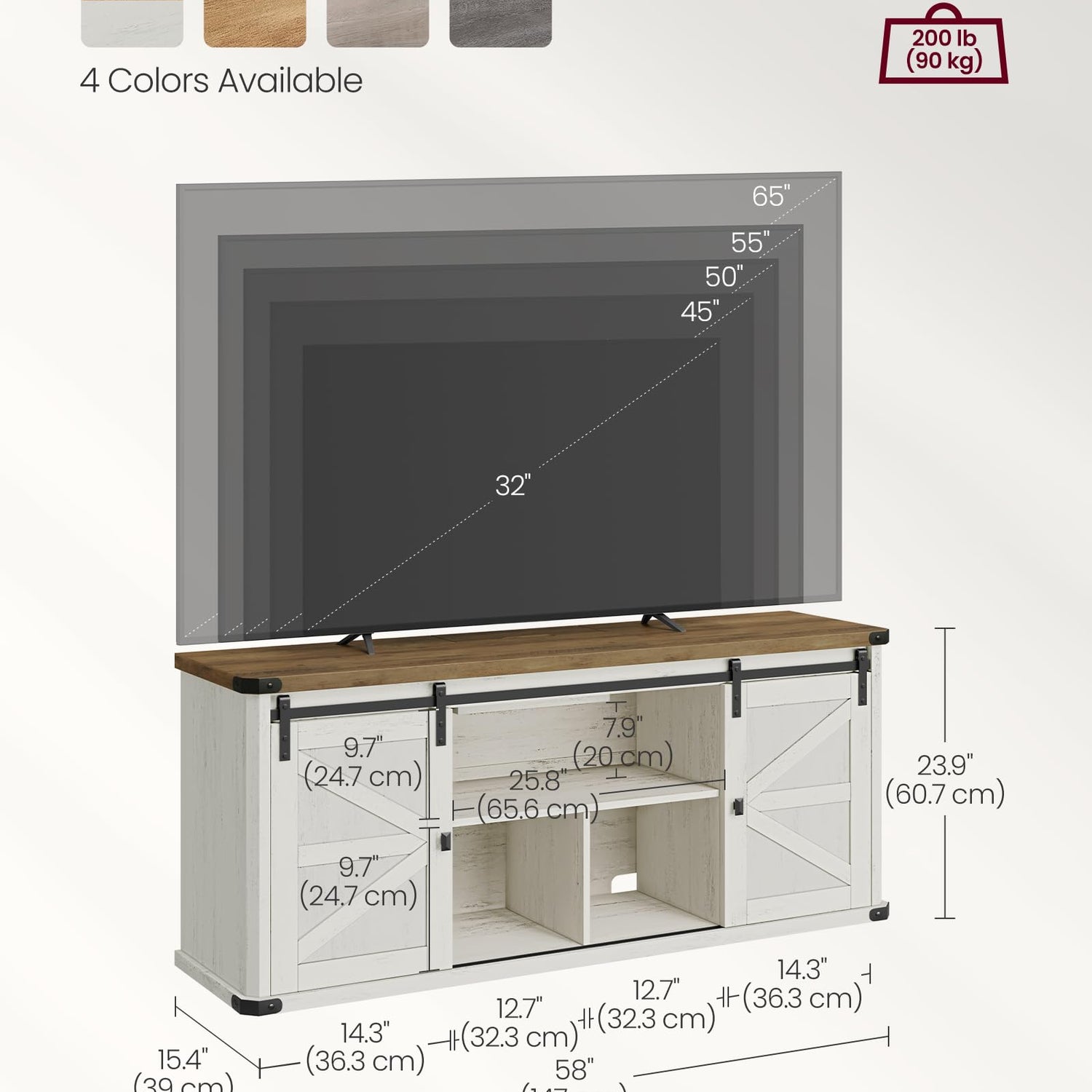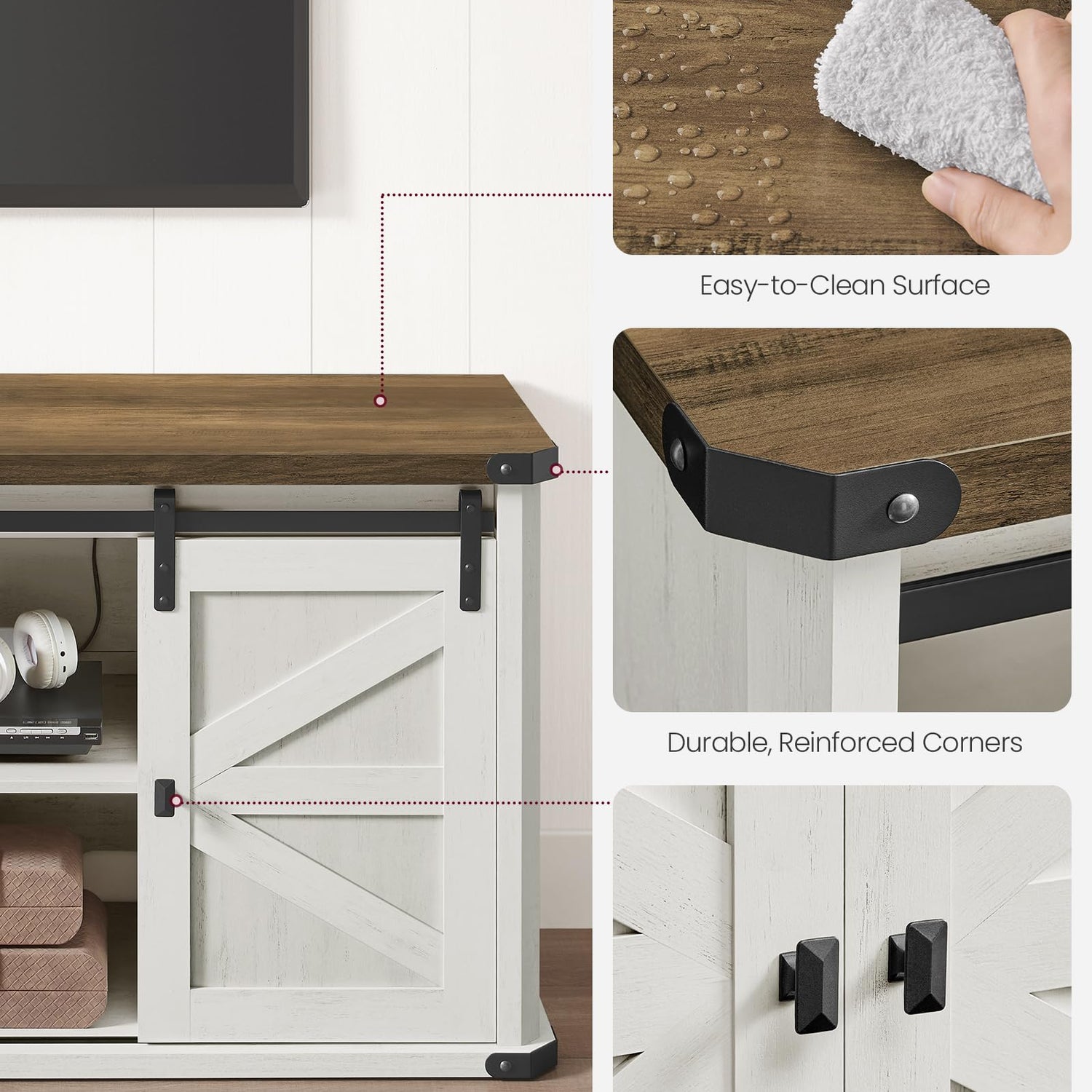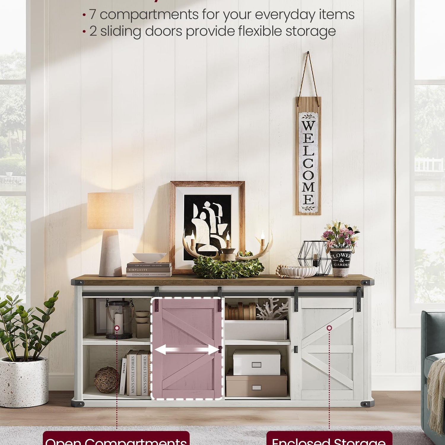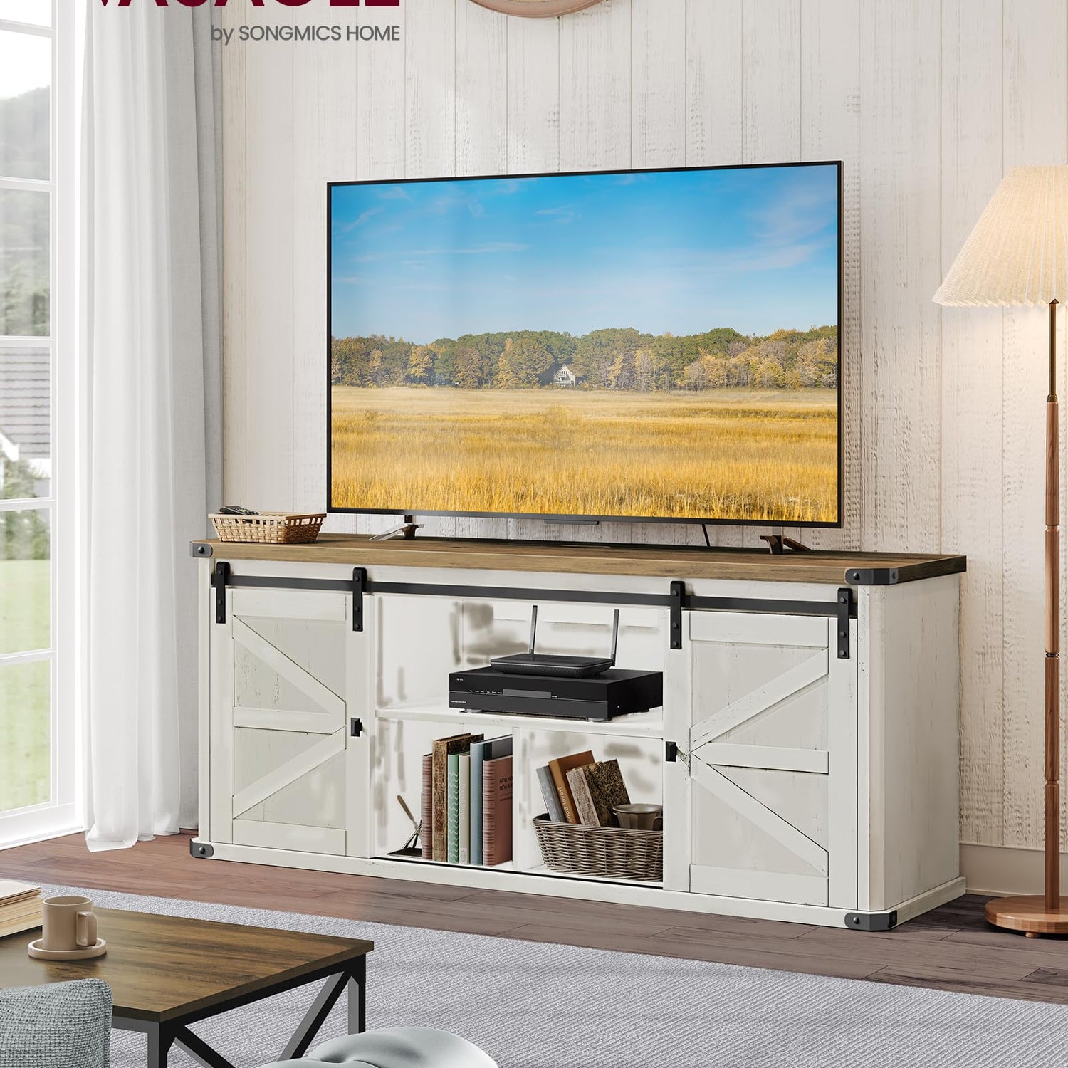 VASAGLE TV Stand for TVs up to 65 Inches, Farmhouse Entertainment Center with Sliding Barn Doors, TV Console Table for Living Room, Rustic White and Honey Brown ULTV324W73