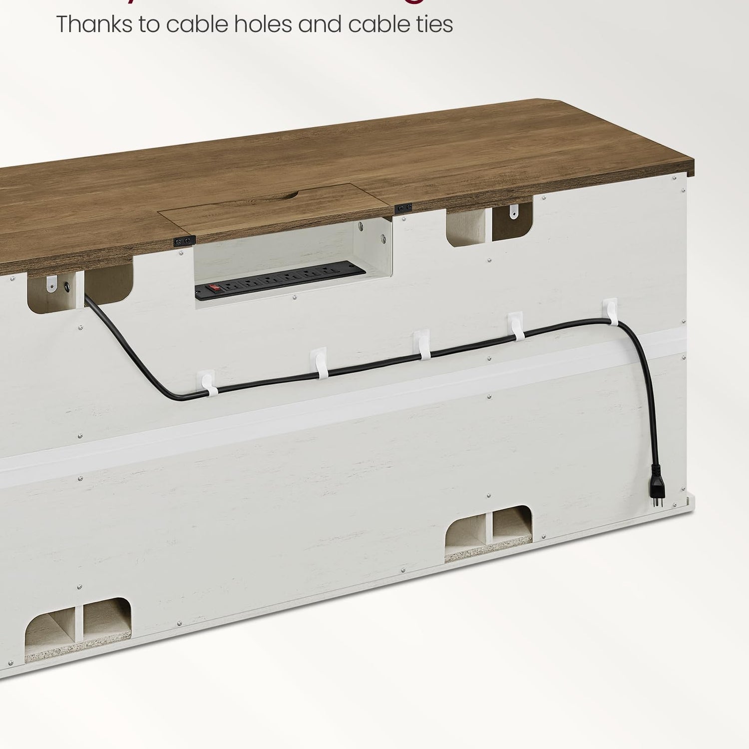 - [Easy Cable Management] The farmhouse TV stand features cable holes and ties to efficiently manage cables, prevent tangles, and contribute to a tidy and pleasing entertainment area in your home