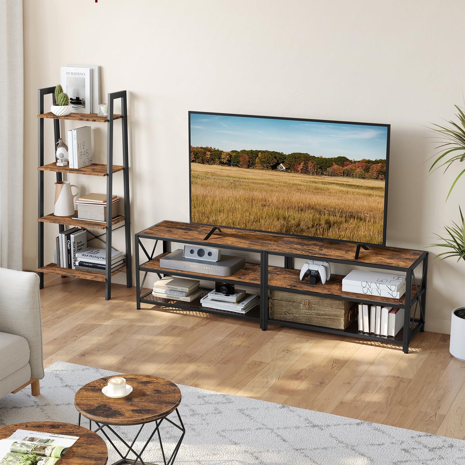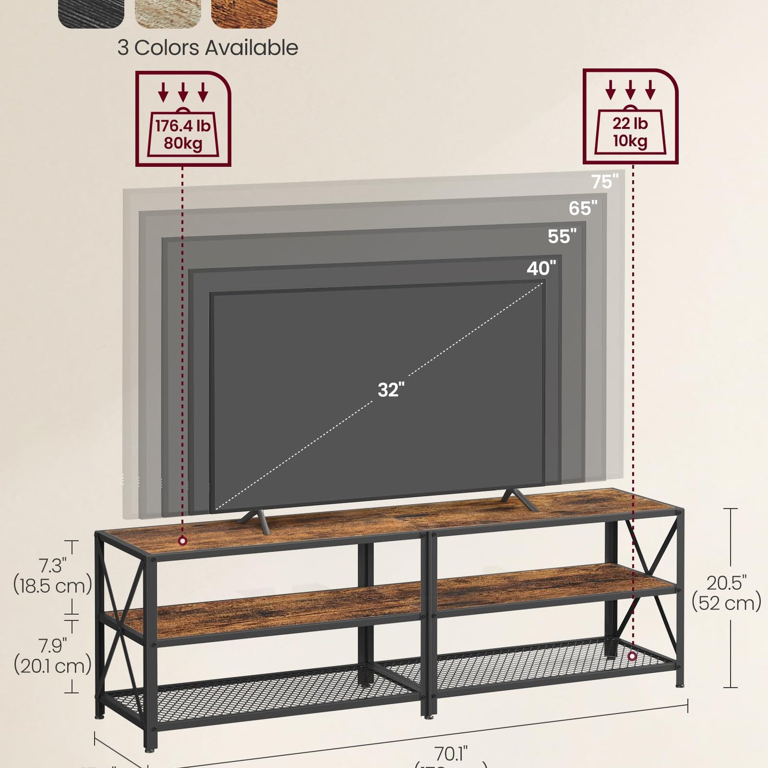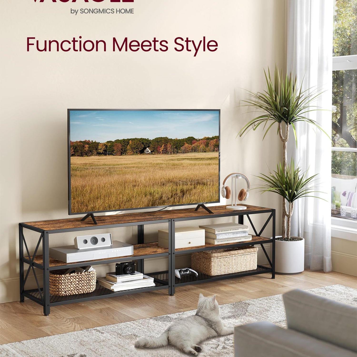 VASAGLE TV Stand, TV Console for TVs Up to 75 Inches, TV Table, 70.1 Inches Width, TV Cabinet with Storage Shelves, Steel Frame, for Living Room, Bedroom, Rustic Brown and Black ULTV096B01V1