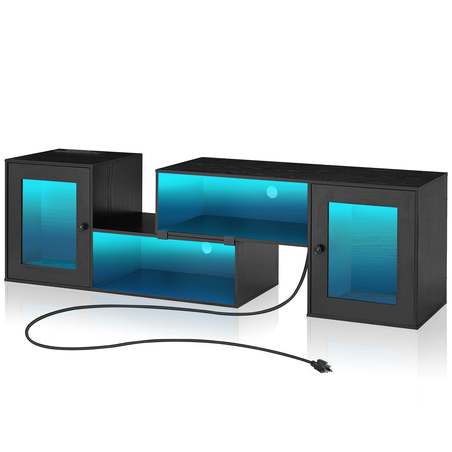 - Deformable TV Stand: VECELO living room tv stand has three assembled shapes for living room, bedroom. Place the tv stand with storage in different style per your preference. Equipped with LED light strips, 4 power sockets and 2 USB ports, whether to power TV, other devices, or charge USB devices, this TV Console Table not only meets your needs, but also makes your desktop tidy.
