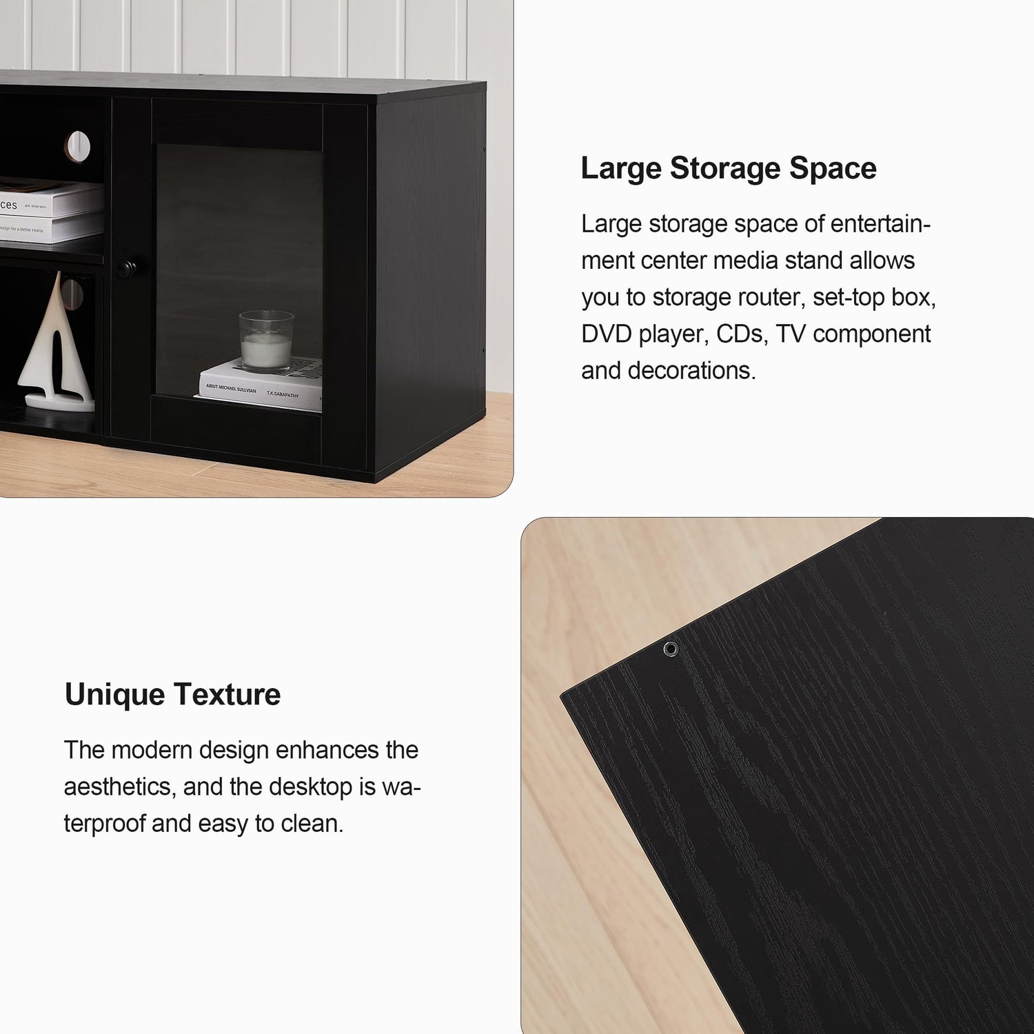 - Widely Used and Safe: Whether it is a 45 inch, 50 inch, 55 inch, 60 inch, 65 inch or 70 inch TV, this tv tables for living room holds your television firmly. Led tv stand black is made of ABS fireproof shell material to ensure safety and durability. This entertainment stand is built with phosphor copper conductor material to provide reliable electrical connection and ensure the reliability of power socket and USB socket. Use VECELO TV stand for living room with confidence.
