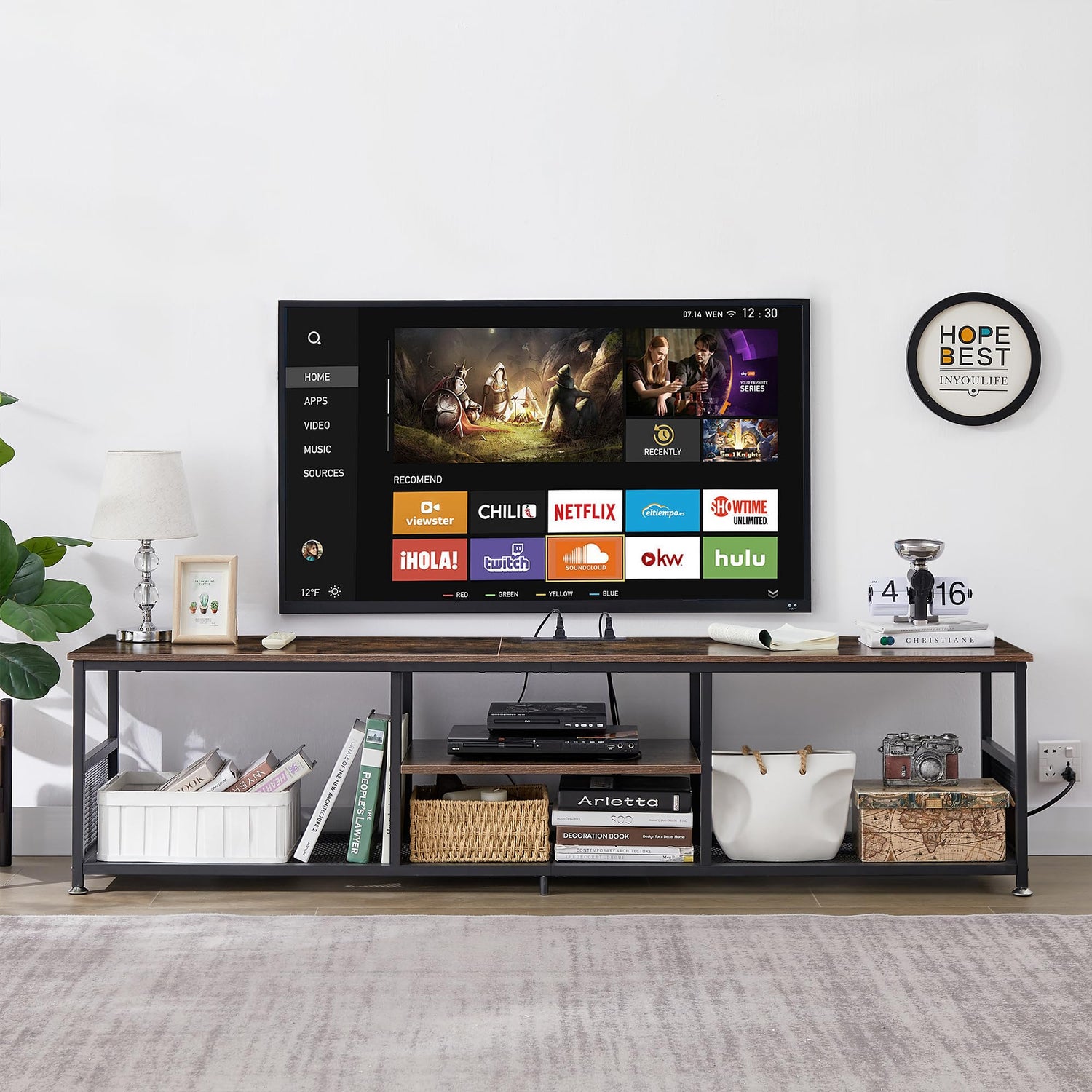 - 【Open Space Design TV Stand】 This TV Stand is degigned of open space, which means no overheating electronics and provides ease of access for cables. We don't need to worry about the device overheating due to being in a confined space. Besides,The different open space sections make for nice storage or an easy space to decorate.
