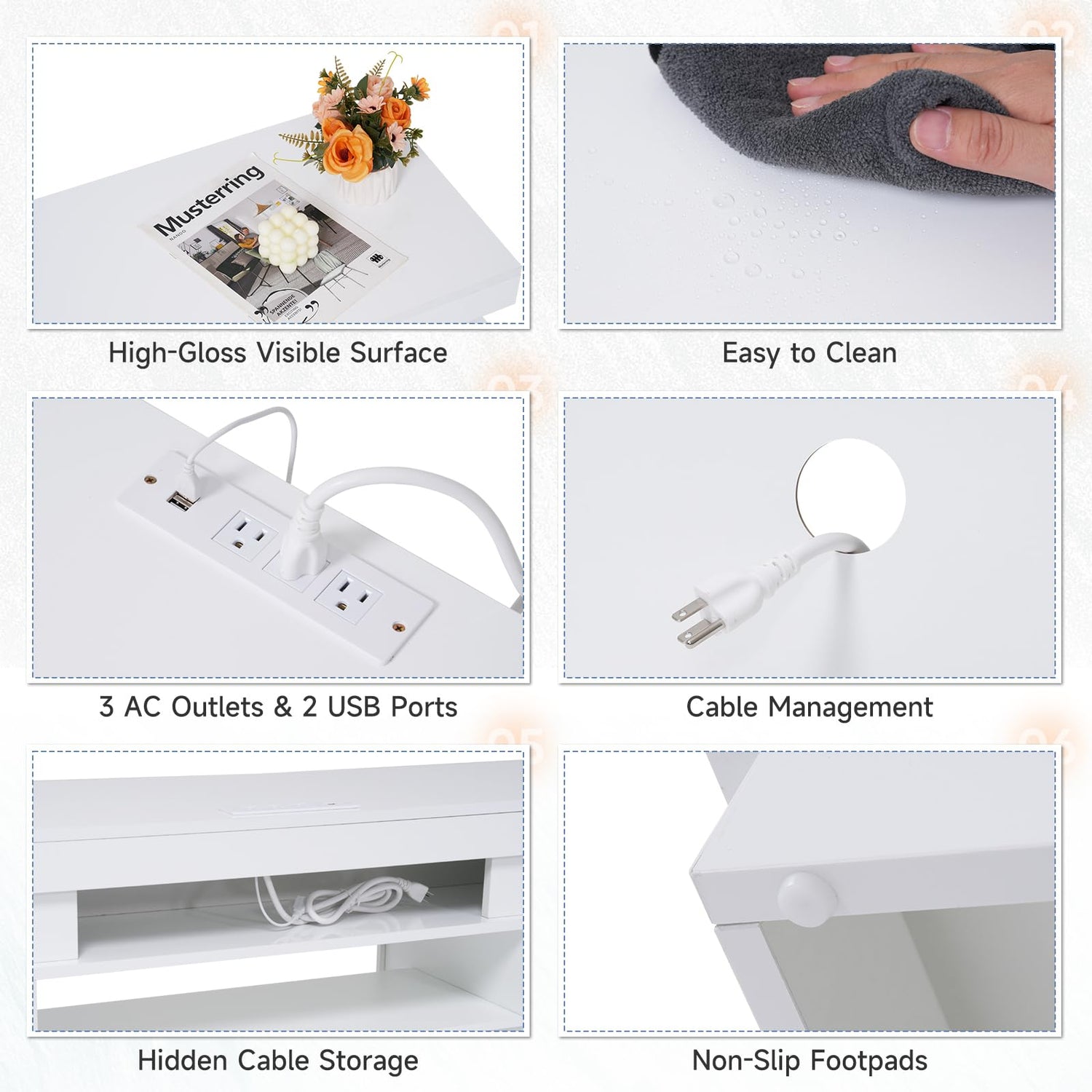 • Built-in Power Outlet: Comes with 2 USB ports, 3 AC outlets and a 4.9-foot power cord, this TV console table can easily power electronic devices such as game consoles, speakers, routers. 2 hidden cable management holes on the back reduce wire clutter and make your entertainment center more organized.