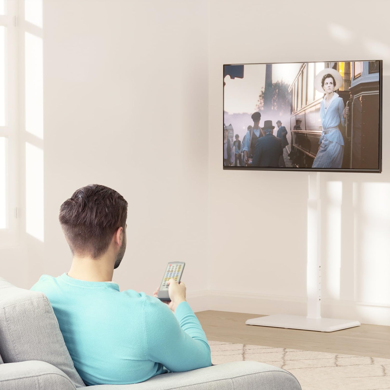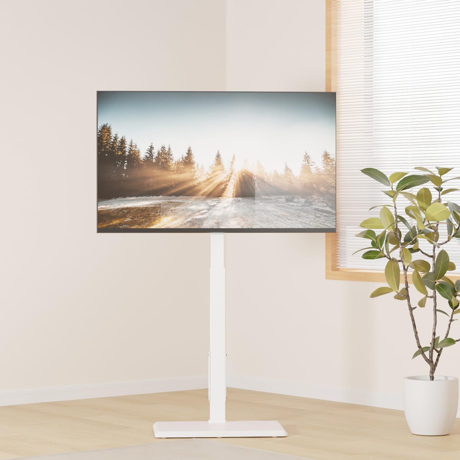 - VIEWING ANGLE SWIVEL 60°: Conveniently swivel your Floor TV stand +/-30° to the right or left, allowing for easy adjustment of the screen direction and ensuring the best viewing angle from anywhere in the room
