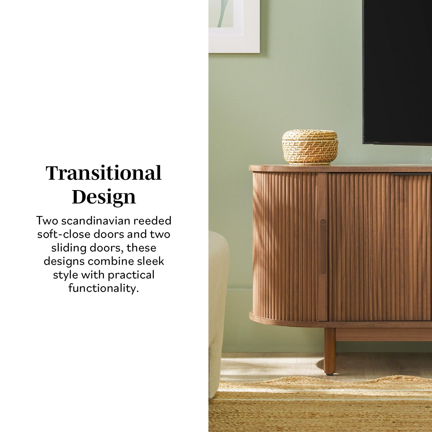 Walker Edison Chloe Curved Reeded TV Stand, Sliding Doors, 65 Inch, 60 inch, Mocha