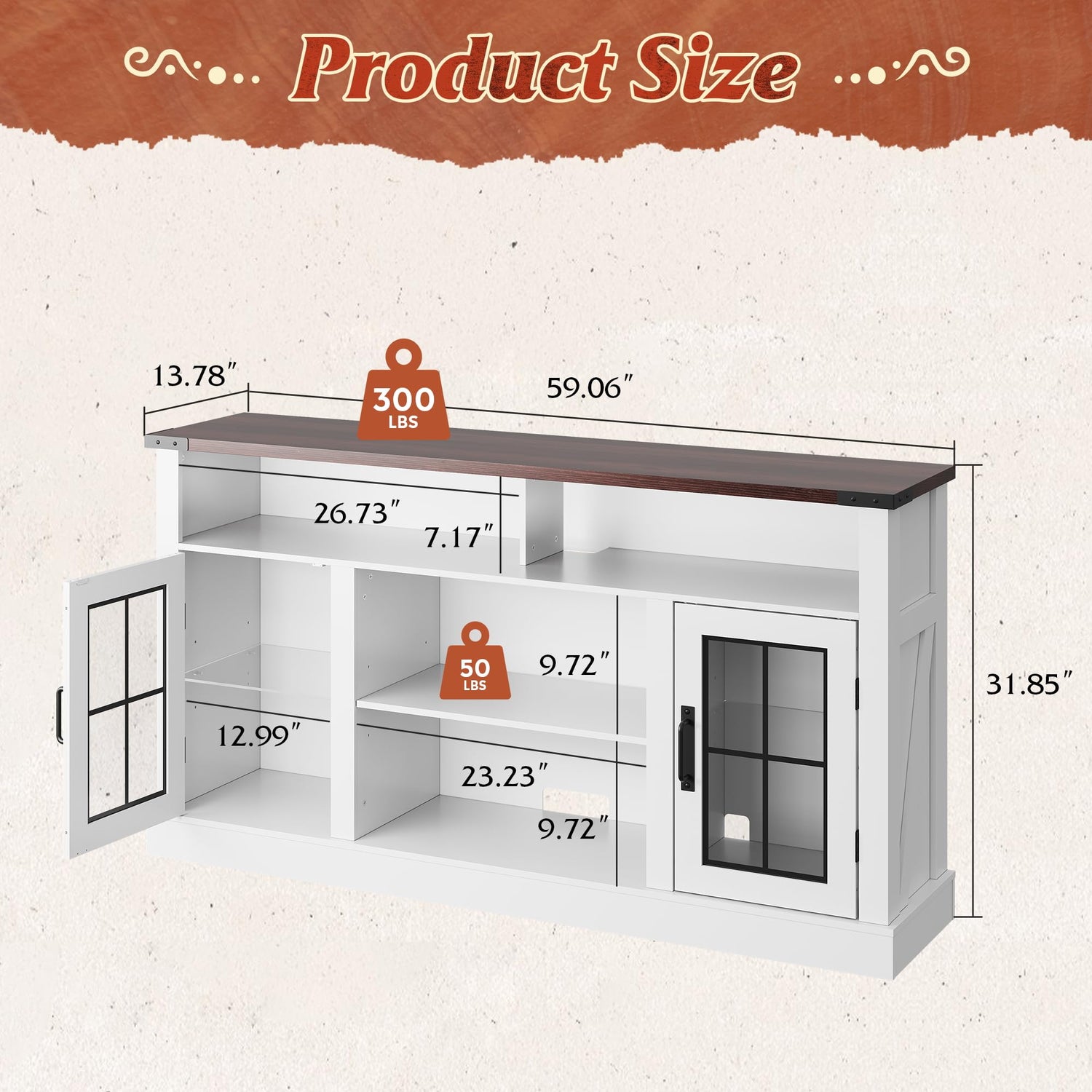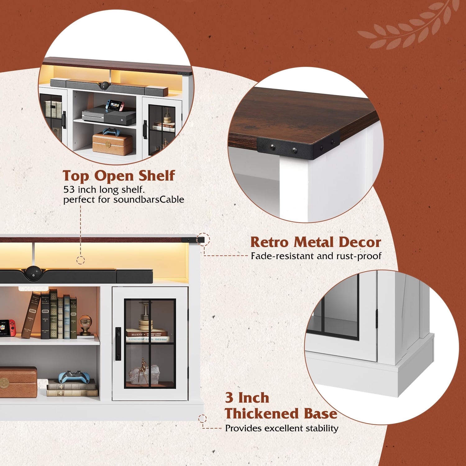 - 【Farmhouse Style TV Stand】Our Farmhouse Entertainment Center combines glass side doors, solid particle board, and a classic finish with metal accents at the corners, perfectly combining tradition with modernity for added character and durability. Antique metal accents resist fading and rusting, enhancing the beauty of your living room while showcasing superior craftsmanship