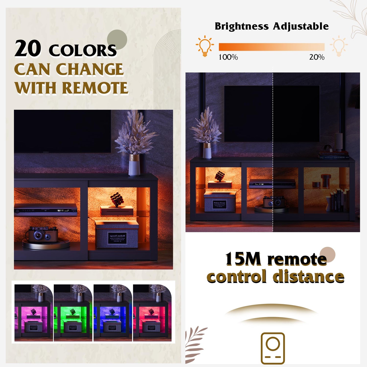 - đ Smart and Ample Storage Solutions Say goodbye to clutter and hello to a tidy living space with this TV stand's intelligent storage design. Featuring three adjustable glass shelves, you can customize your storage to fit your needs, whether it's for media essentials or decorative items. The open design makes cleaning easy, and the eco-friendly materials ensure a safe and sustainable choice for your home.