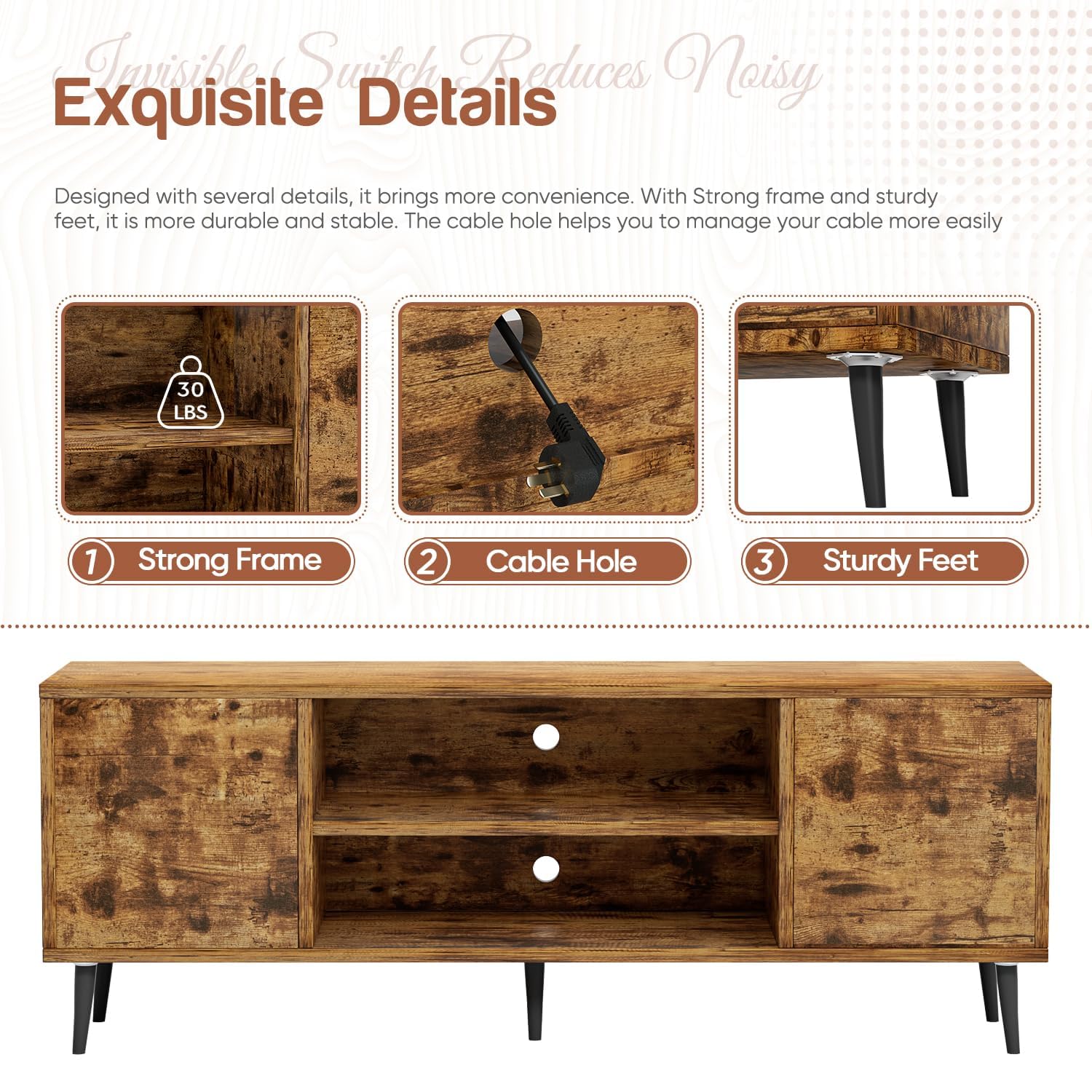 YESHOMY Modern TV Stand for 65" Television, Entertainment Center with Storage Cabinets and Open Shelves, Retro Style Media Console for Living Room, Bedroom, Office, 58 Inch, Rustic Brown