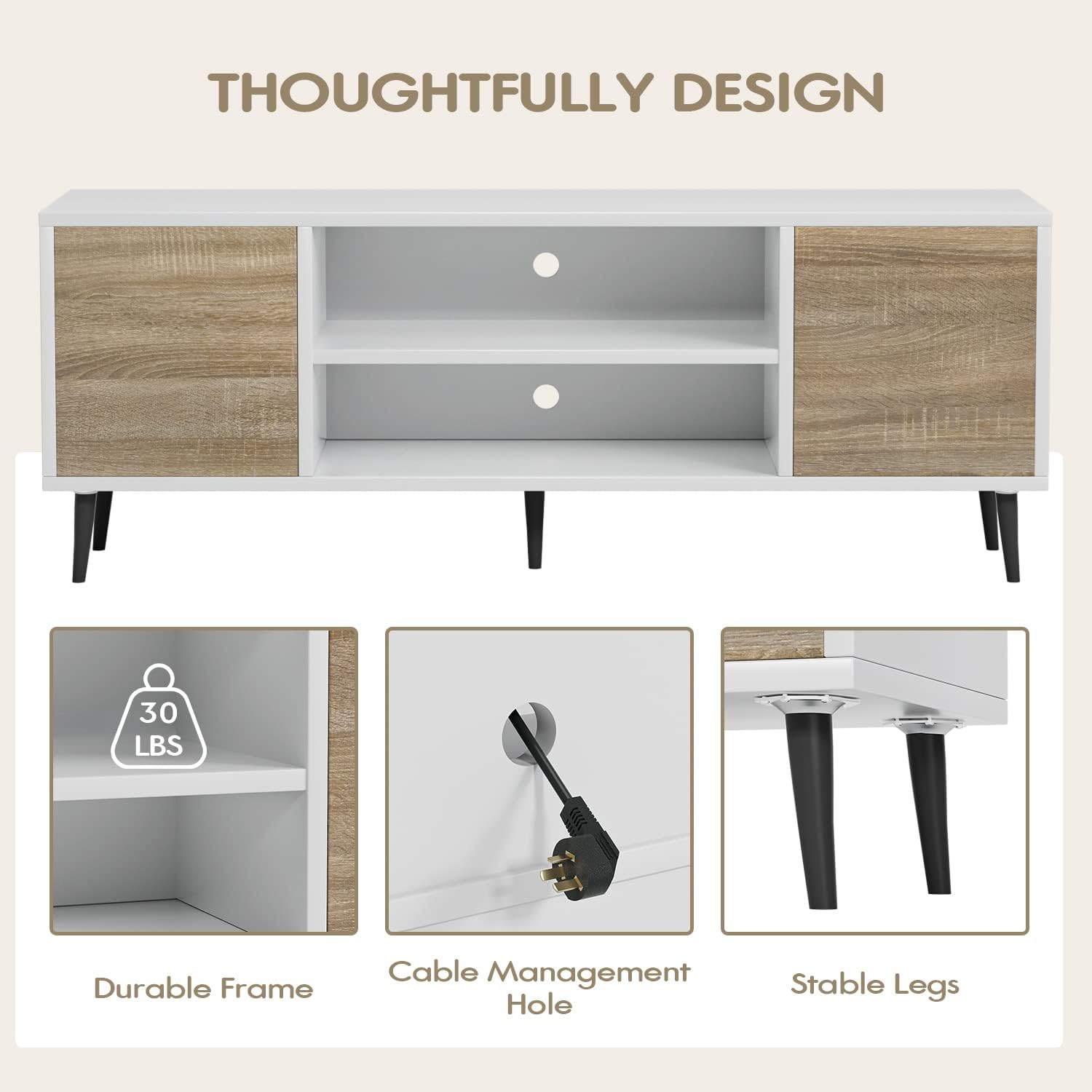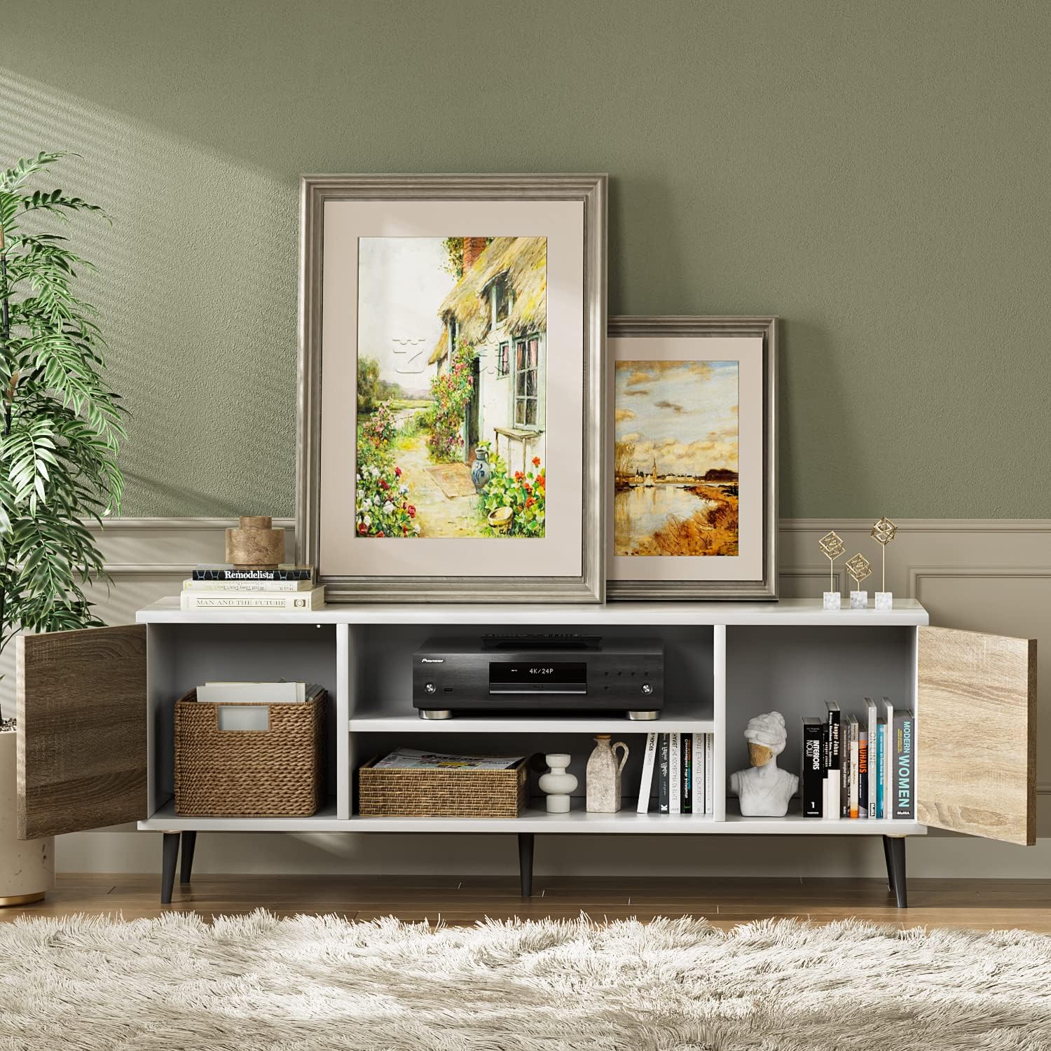 YESHOMY Modern TV Stand for 65" Television, Entertainment Center with Two Storage Cabinets, Retro Style Media Console for Living Room, Bedroom, Office, 58 Inch, White and Coffee