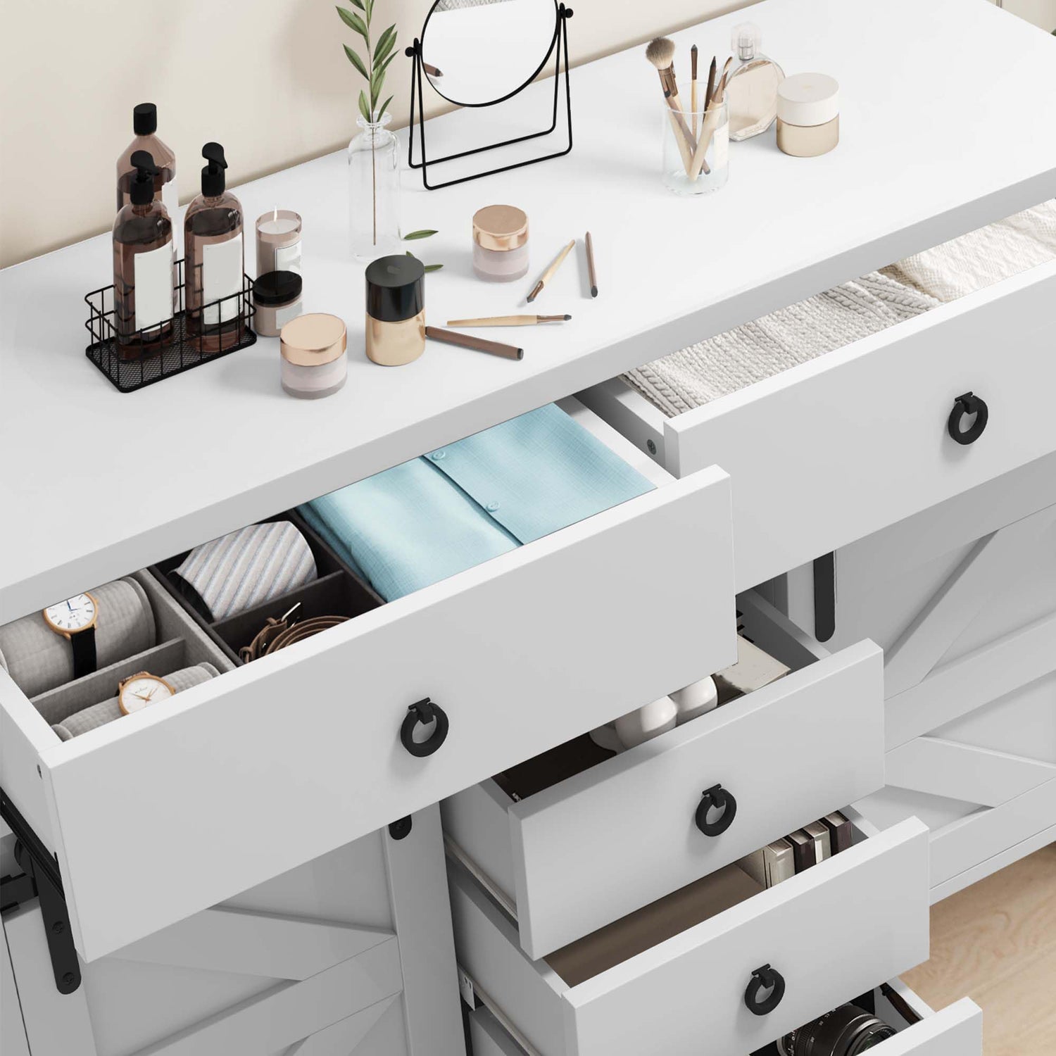 - 【54" Wooden Farmhouse Dresser With Sliding Barn Door】The 5 vintage dresser combines vintage glamour with modern functionality. The farmhouse space-saving barn door slides open on a metal track to reveal adjustable shelf space, allowing you to freely hide or show storage spaces.
