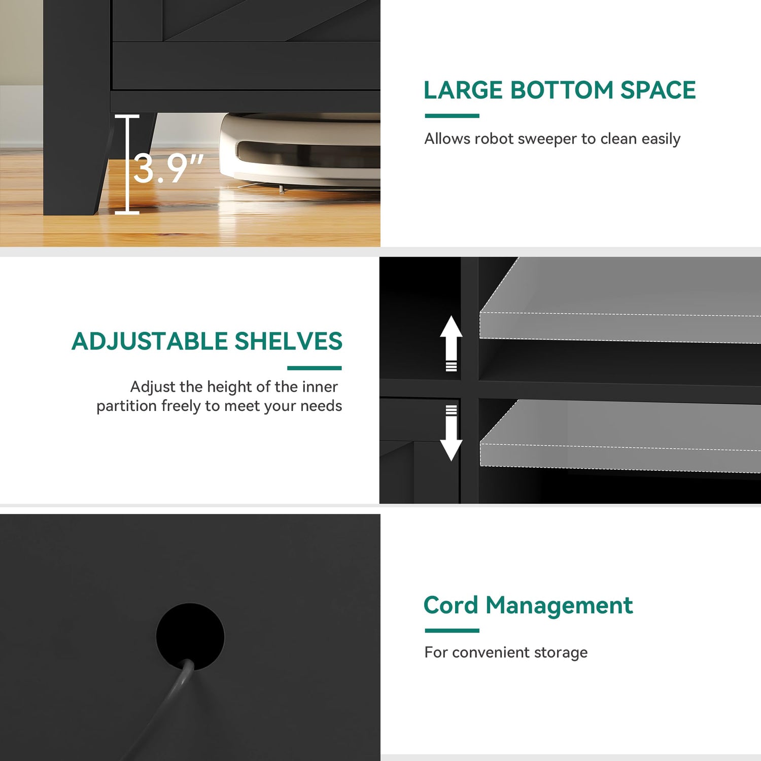 - Farmhouse TV Console: Enhancing diverse home decor styles, this LED TV stand radiates a sleek polish and modern angles; Its timeless farmhouse simplicity enriches your living space for a stylish ambiance