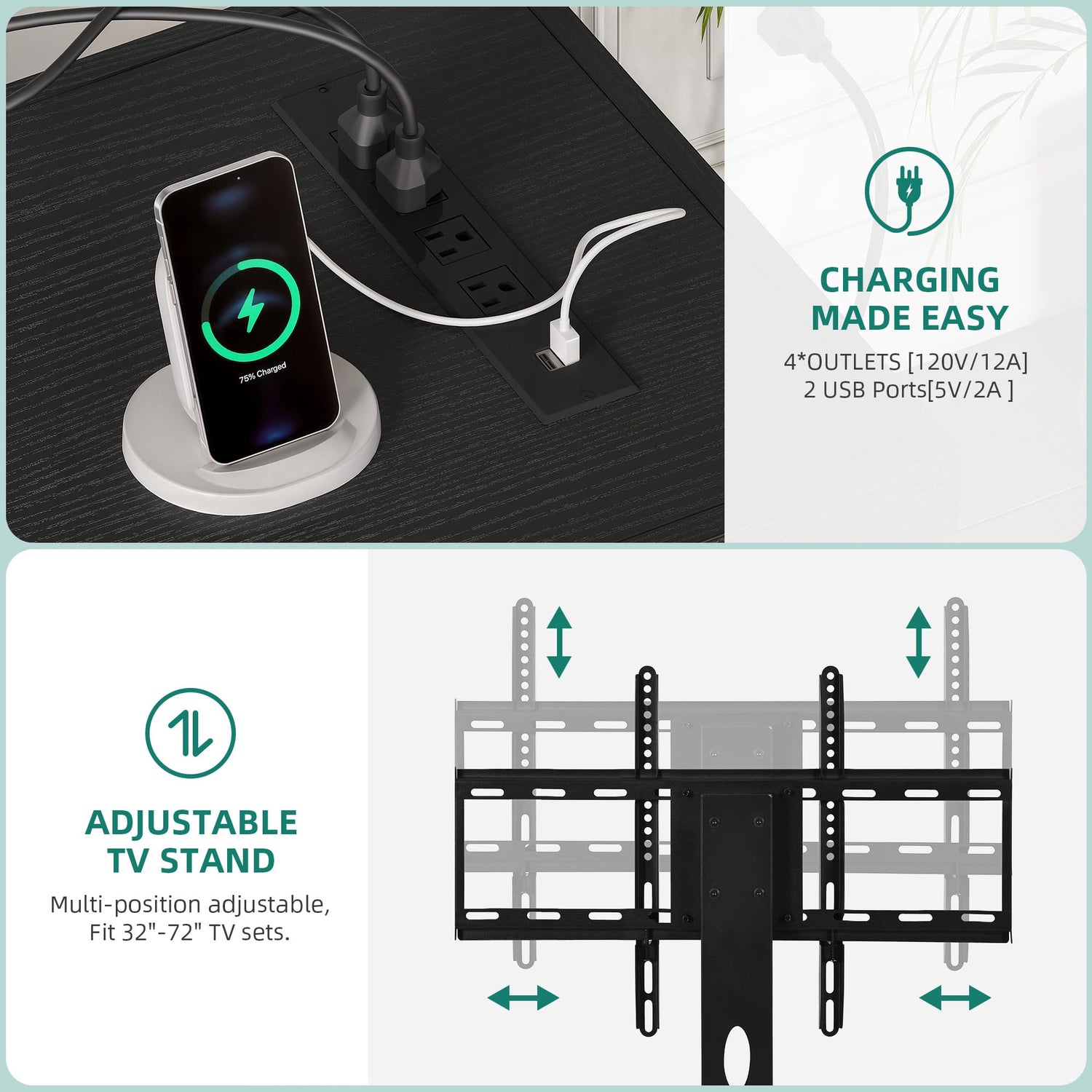 - Modern TV Stand: Engineered with integrated power management (4 outlets + USB hub) and dual-level organization - open display shelves pair with enclosed cabinets to discreetly store gaming systems and tangled cables beneath floating LED accents