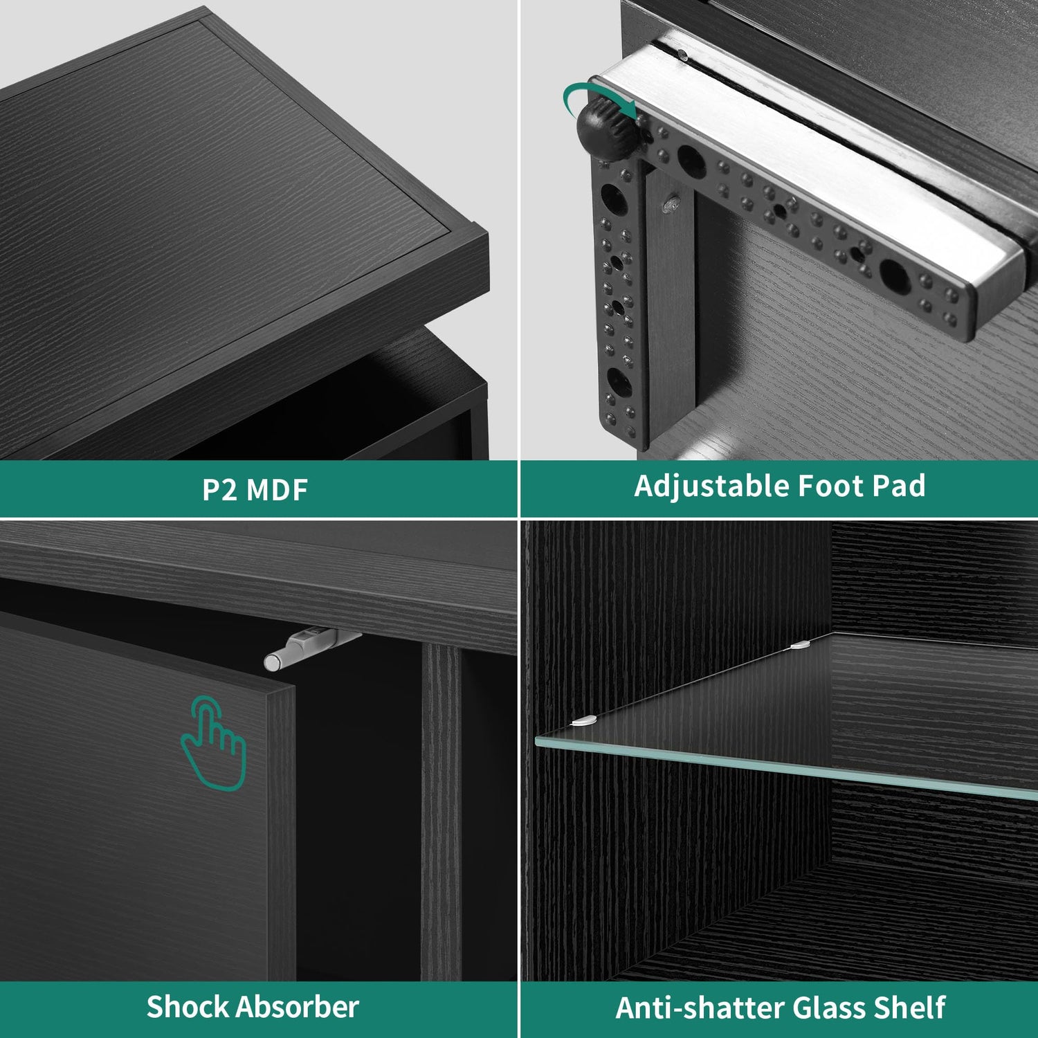 - LED Entertainment Center: Dynamic RGB light strips frame the base with 16 spectrum hues and animated patterns, controllable through smart devices to enhance movie nights with customizable atmospheric glow around your media setup