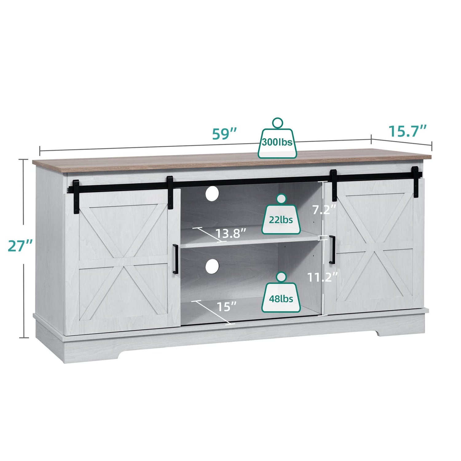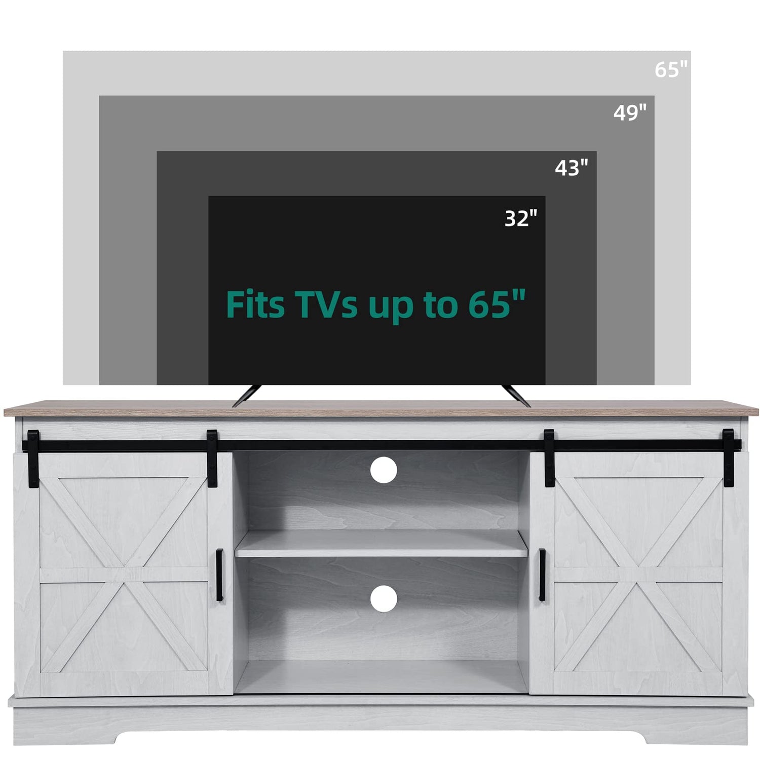 YITAHOME Farmhouse TV Stand for 65 Inch Television Stand, Entertainment Center with Storage Cabinets and Sliding Barn Doors, Rustic Media TV Console Table for Living Room, Grey White/Grey Wash