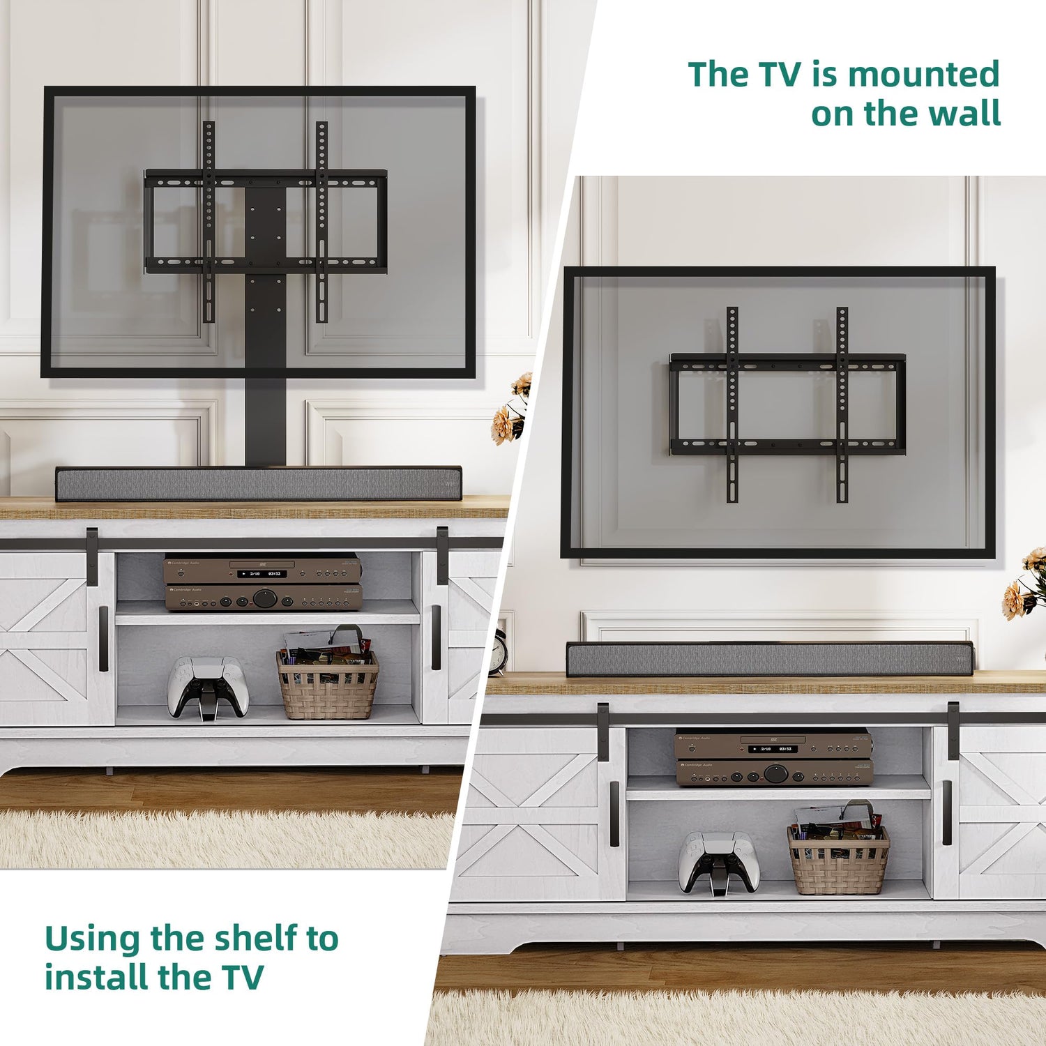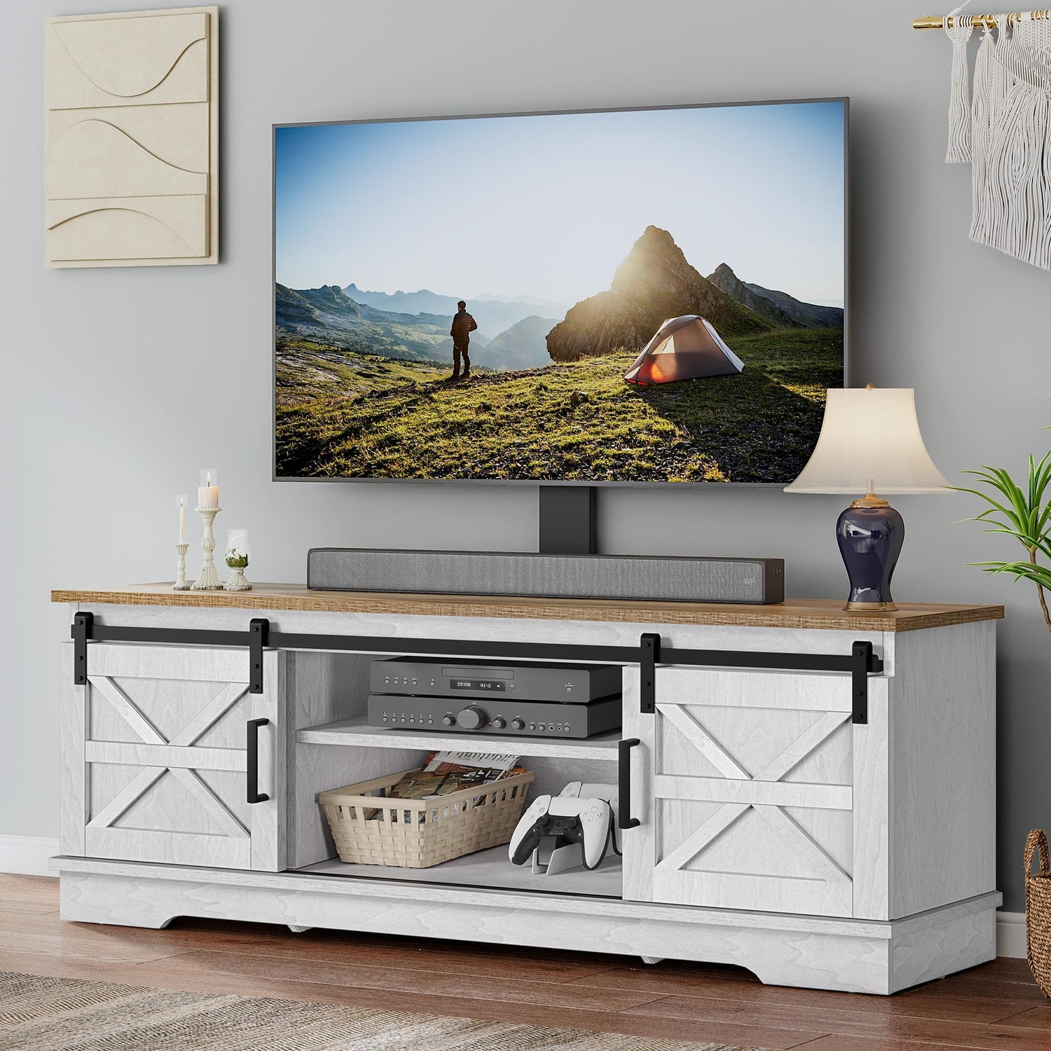 YITAHOME Farmhouse TV Stand with Mount, Television Stand Mount with 3 Height Adjustment for 32-70 inch TVs, Entertainment Center Media Console w/Sliding Barn Door for Living Room, Grey White/Grey Wash