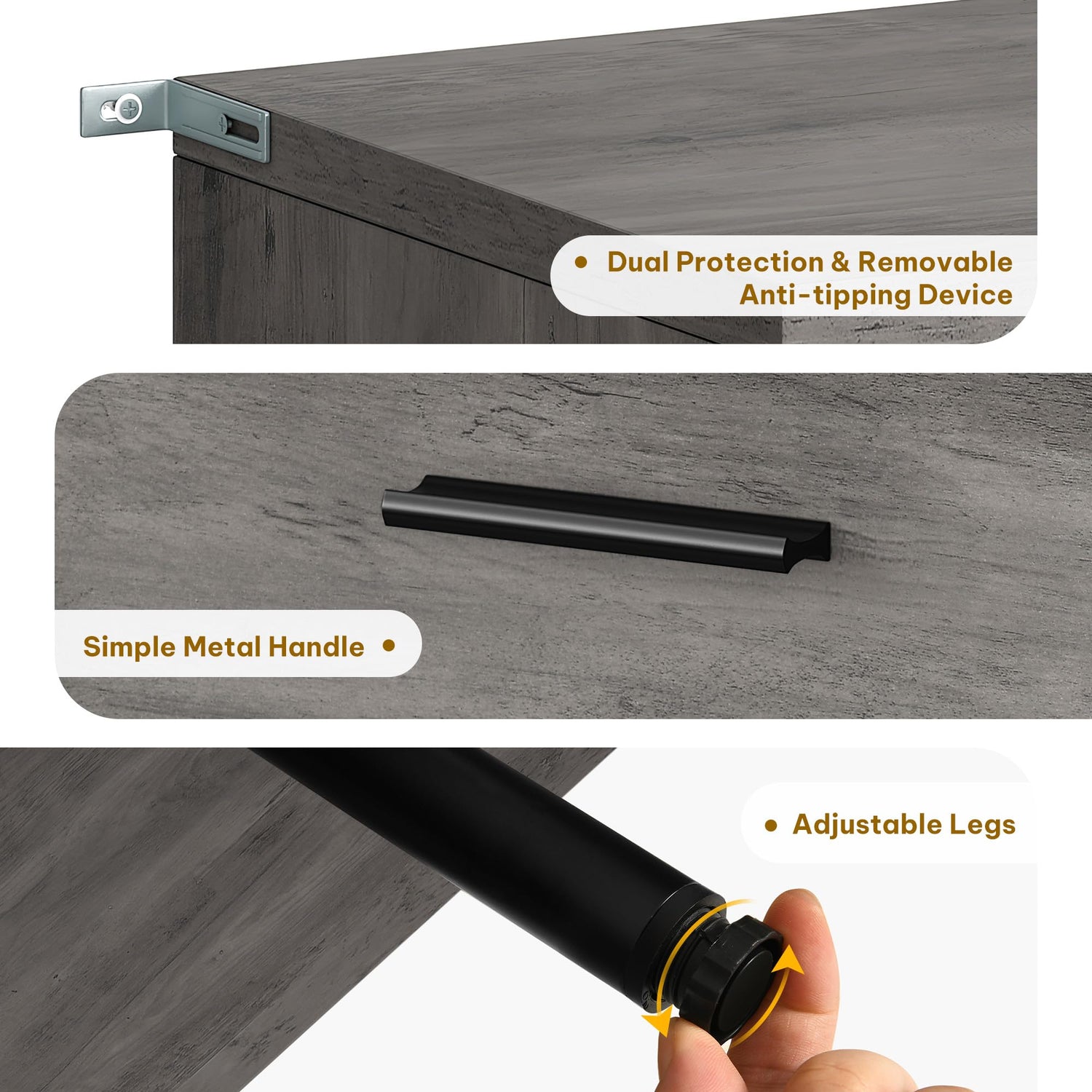 - Anti-Tipping Devices Eliminate Potential Hazards: You know? Accidents always happen unintentionally. The dumping of a storage cabinet can cause harm to families and pets. Therefore, our wood storage chest of drawers adopts dual anti-tipping back buckles and thickened support foot pads, which can better prevent accidents.