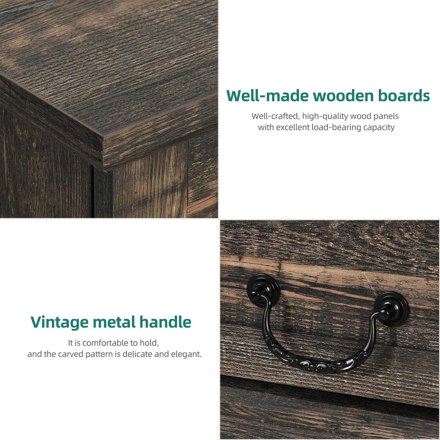 YITAHOME Television Stand for 65/55 Inch TV, Farmhouse TV Stand with 9 Drawers, Adjustable Shelves and Tempered Glass Doors, Entertainment Center TV Media Console for Living Room, Dark Rustic Oak