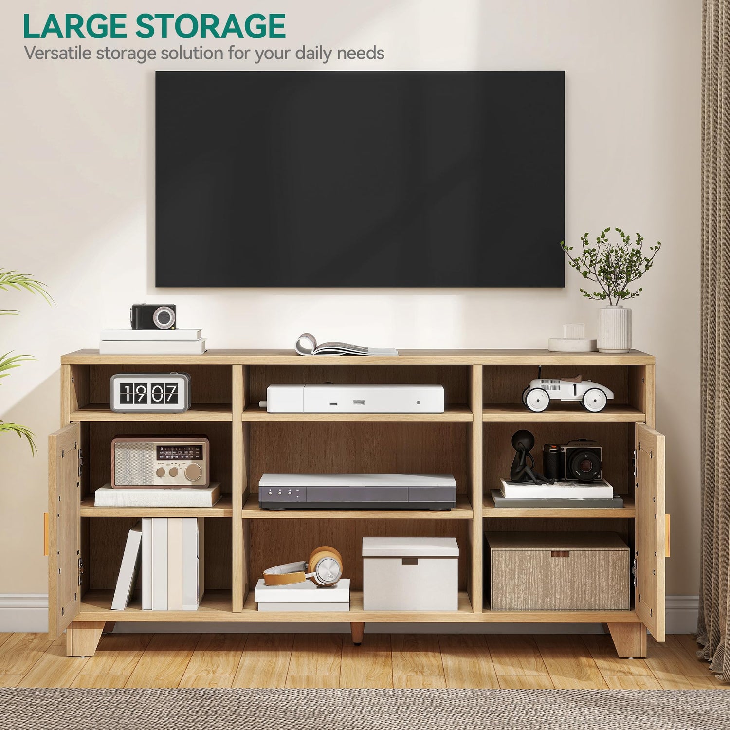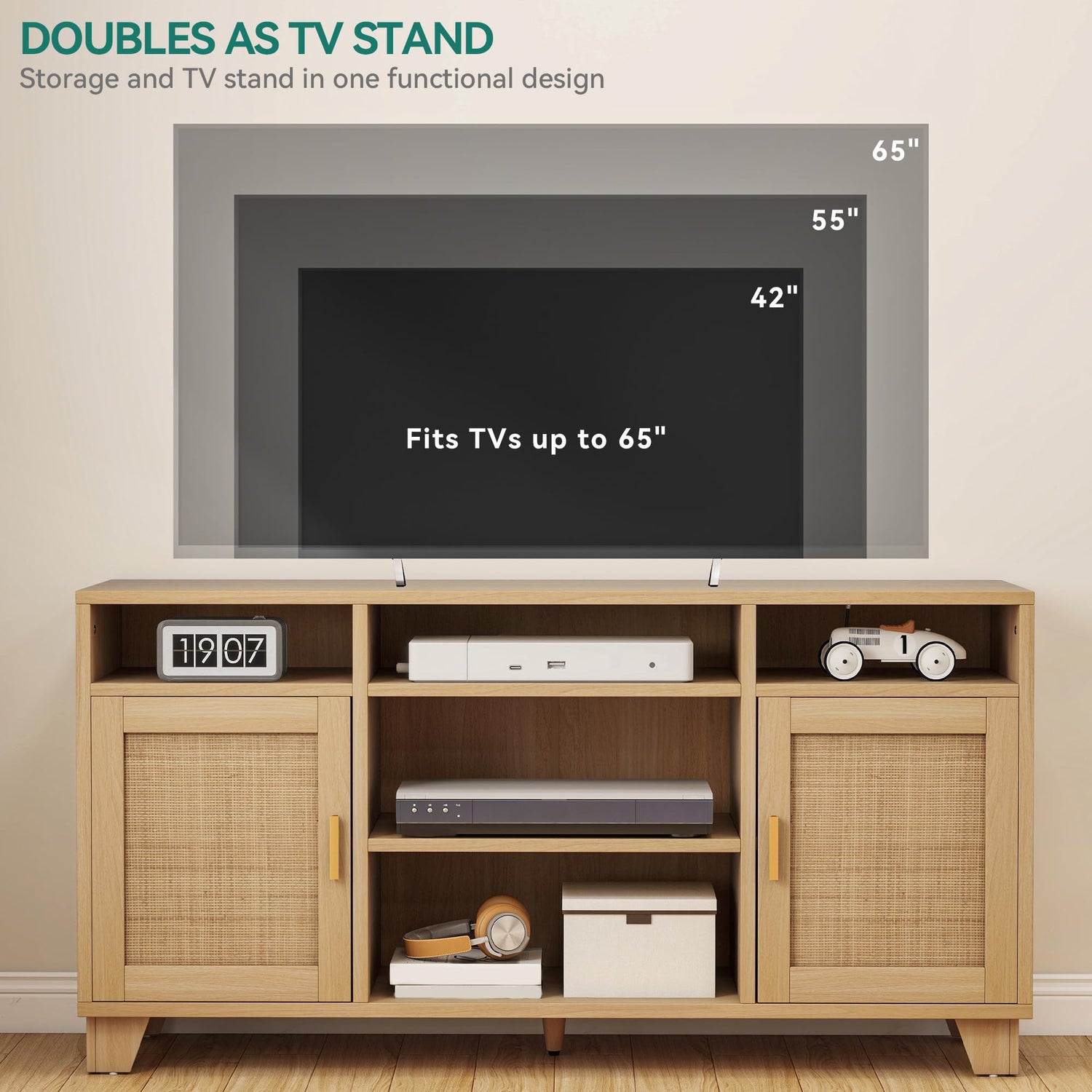 YITAHOME TV Stand for 65 Inch TV, Boho Entertainment Center with Rattan Doors, Storage Cabinets and Open Shelves, Long Boho Media Console for Living Room