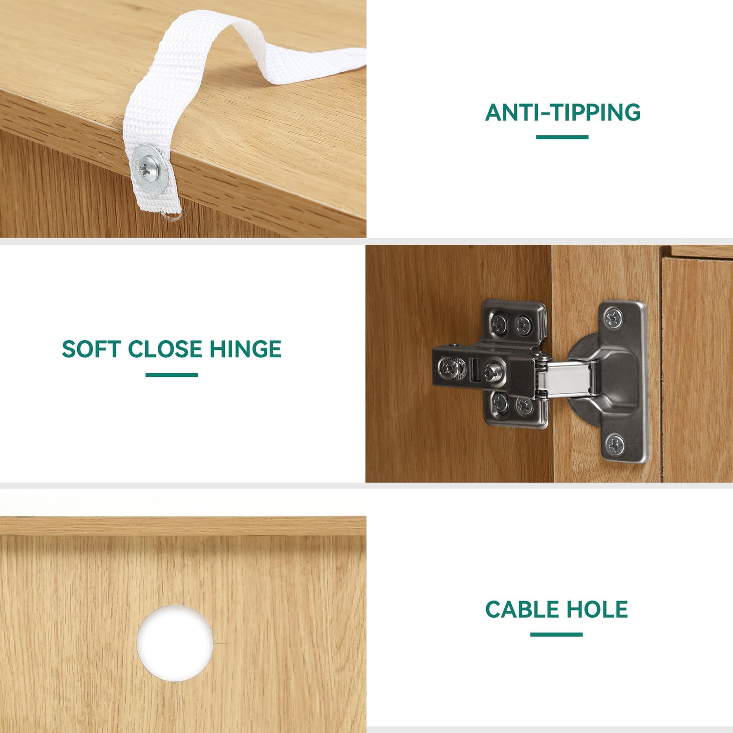 - Stable TV Stand: Equipped with 4 legs and 1 solid wood center foot for stability; 3.5-inch clearance at the bottom for easy cleaning and anti-tip mechanism