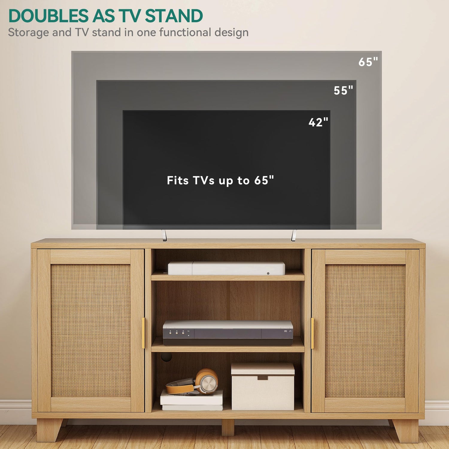 YITAHOME TV Stand for 65 Inch TVs, Boho Entertainment Center with Rattan Doors, Storage Cabinets and Adjustable Shelves, Long Boho Media Console for Living Room