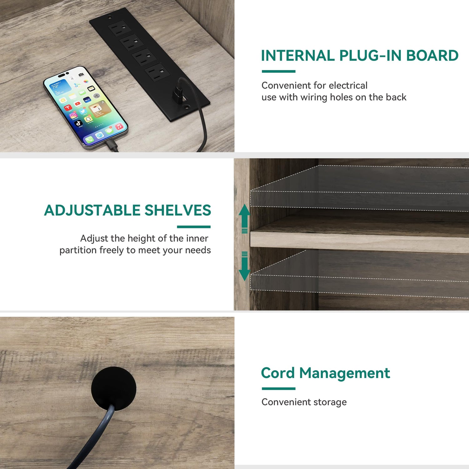 - EASY-TO-USE DETAILS: Our media console features a built-in power outlet and cable management system for added convenience, and a magnetic door latch for easy installation.