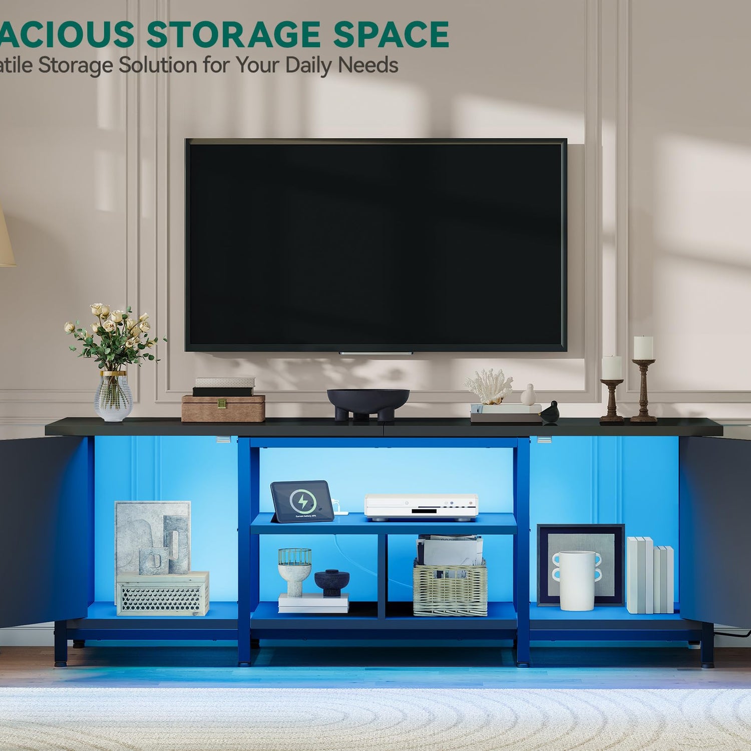 - Light the Mood: Set the dreamy ambiance with this 75-inch TV stand; It includes an app-controlled LED light strip with multiple modes and vibrant colors, letting you create your ideal vibe from dynamic party hues to a cool cinematic glow