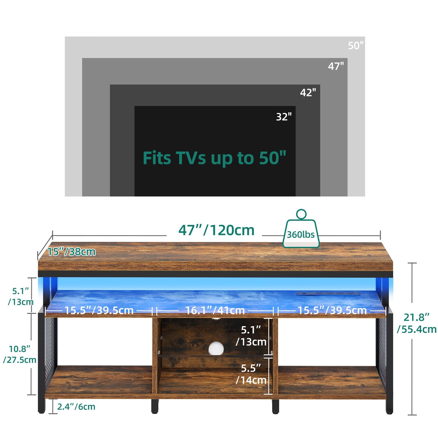 YITAHOME TV Stands for Living Room, Entertainment Center with Storage,TV Stand for 50/48 inch TV, LED TV Stand with Power Outlets, Industrial TV Console Cabinet, Retro Brown