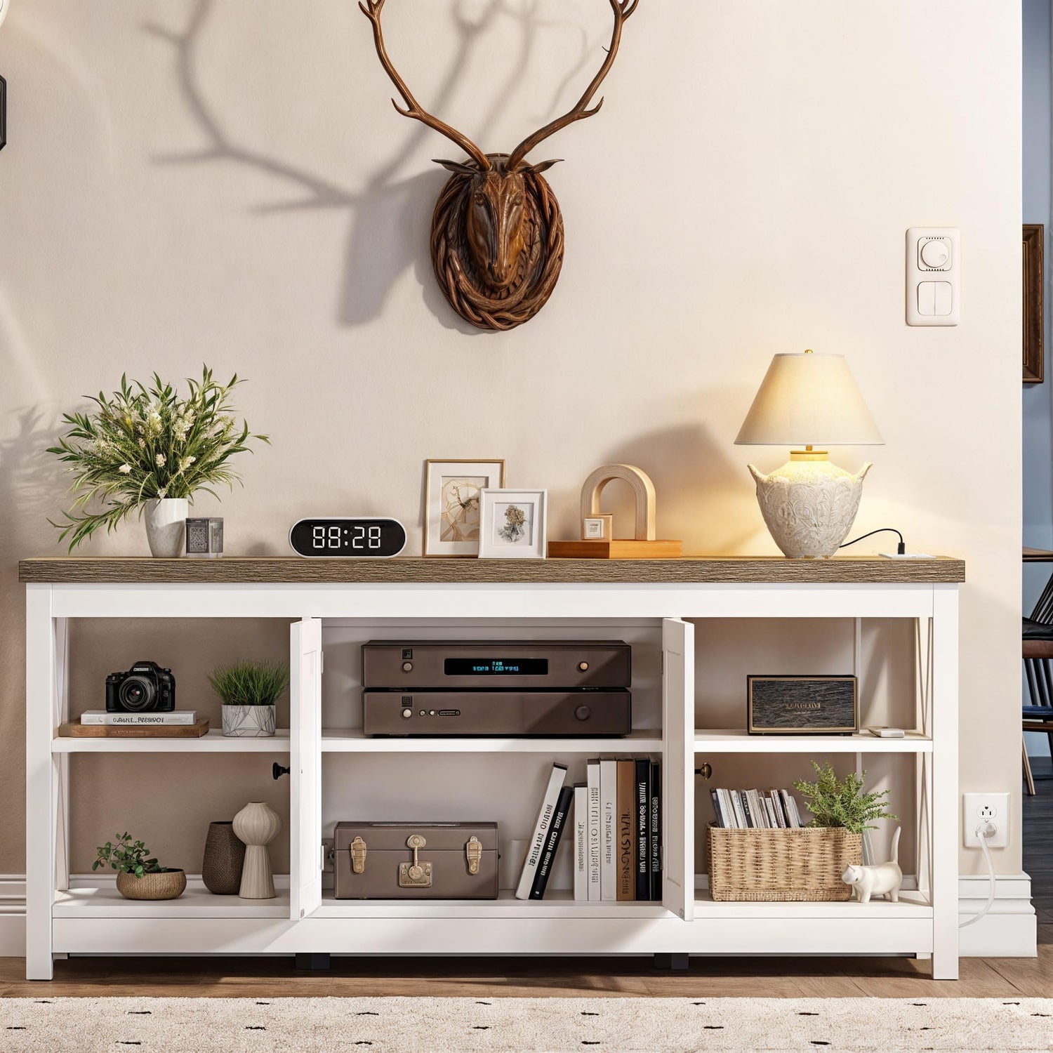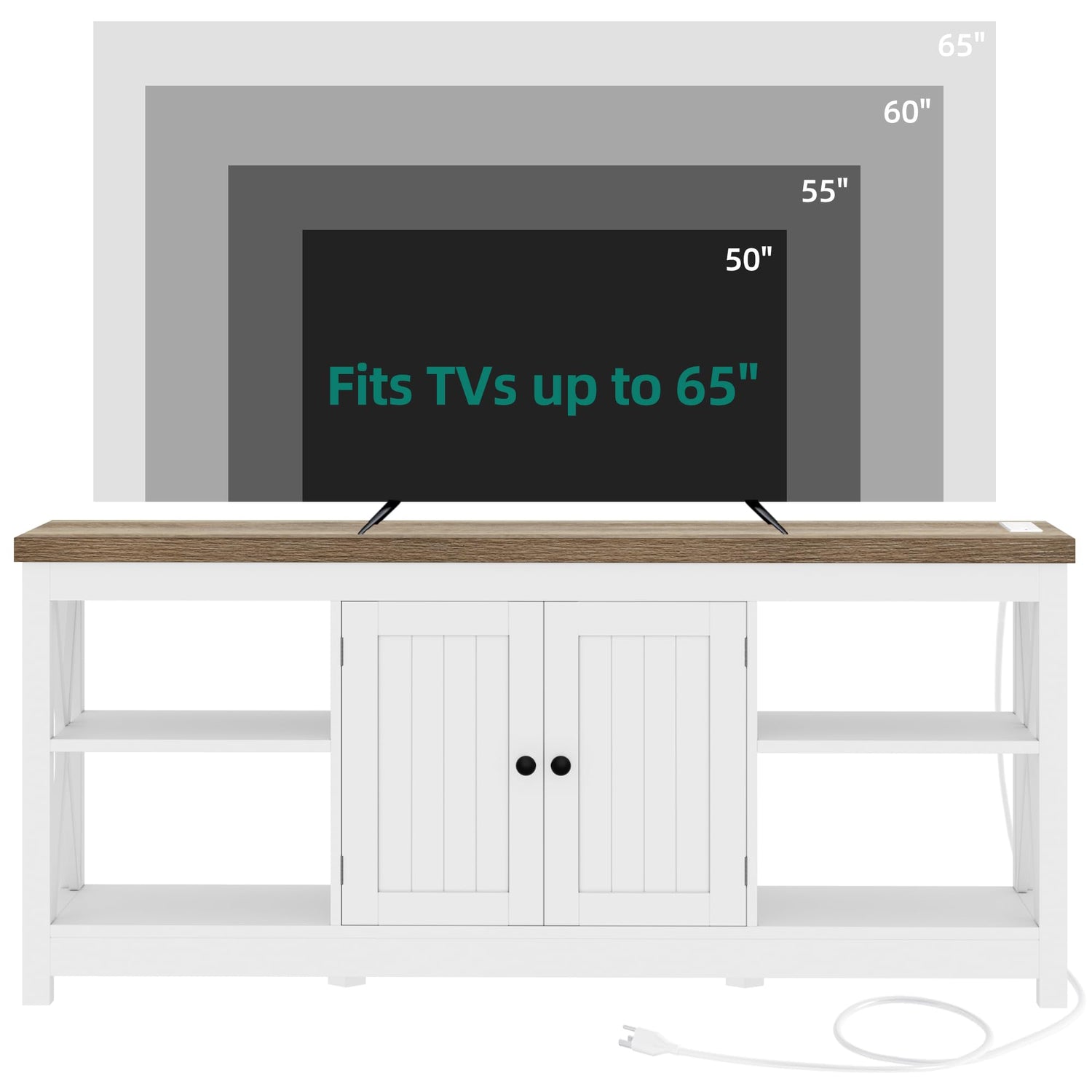 YITAHOME TV Stands for Living Room, Modern Entertainment Center with Power Outlets for Television up to 65 Inch, Farmhouse Media Console TV Cabinet with Adjustable Shelf & Open Shelves, White